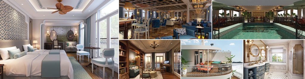 Les navires Uniworld se distinguent par leur décoration inspirée des destinations visitées, avec des intérieurs somptueux, des matériaux nobles et une ambiance boutique-hôtel. Les cabines et suites offrent un confort supérieur, souvent avec vue panoramique, tandis que le service à bord est reconnu pour son attention et sa personnalisation.