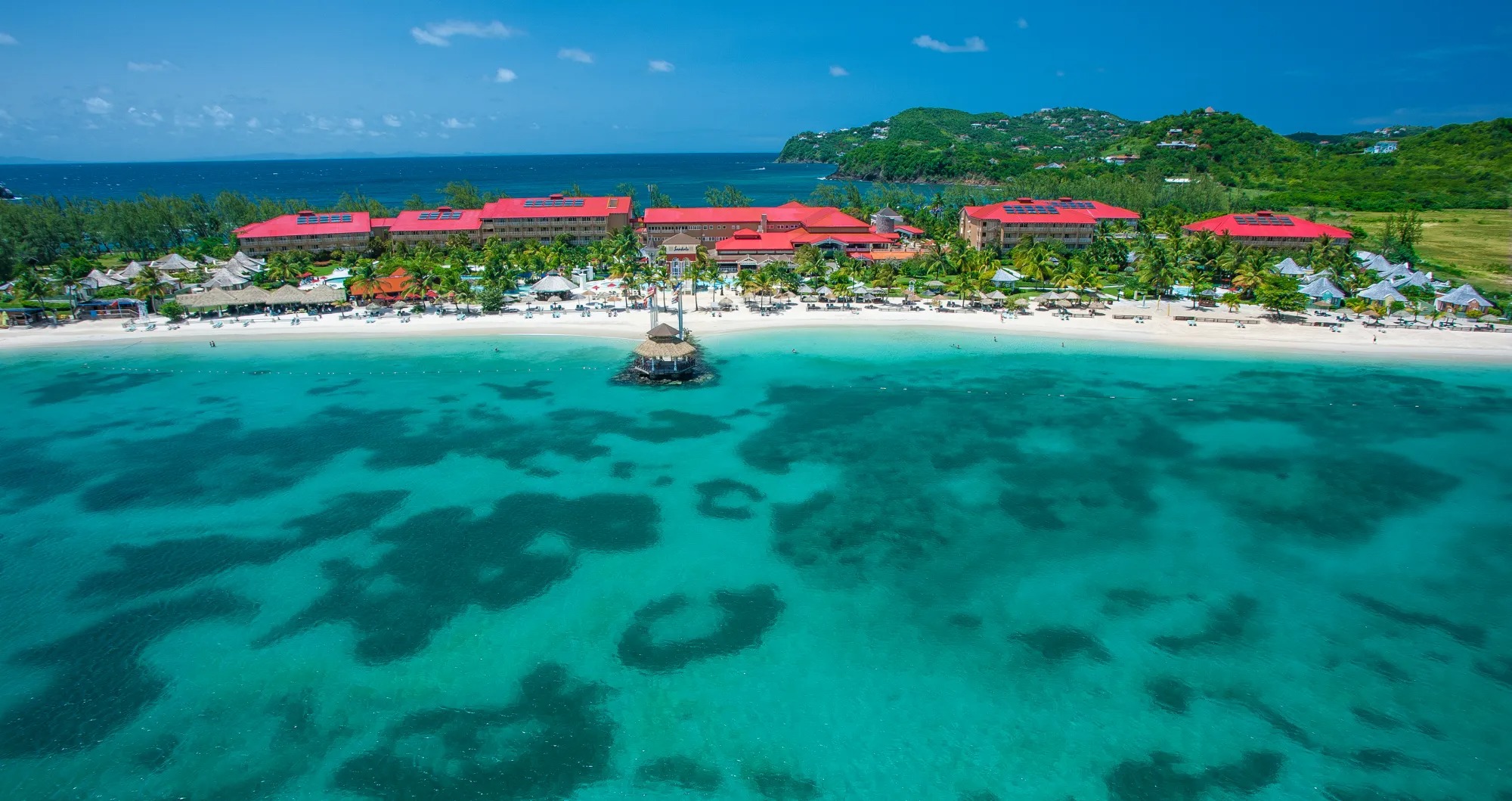 Le Sandals Grande St. Lucian Spa & Beach Resort, un établissement véritablement grandiose, jouit d’une vue grandiose sur sa propre péninsule. Cet établissement de 311 chambres offre des vues sur la mer des deux côtés de l’établissement, qui est entièrement entouré d’étendues d’eau. Cinq piscines principales parsèment cette propriété spectaculaire, dont la piscine signée Sandals avec l’emblématique Sunset Tower et le bar dans la piscine.