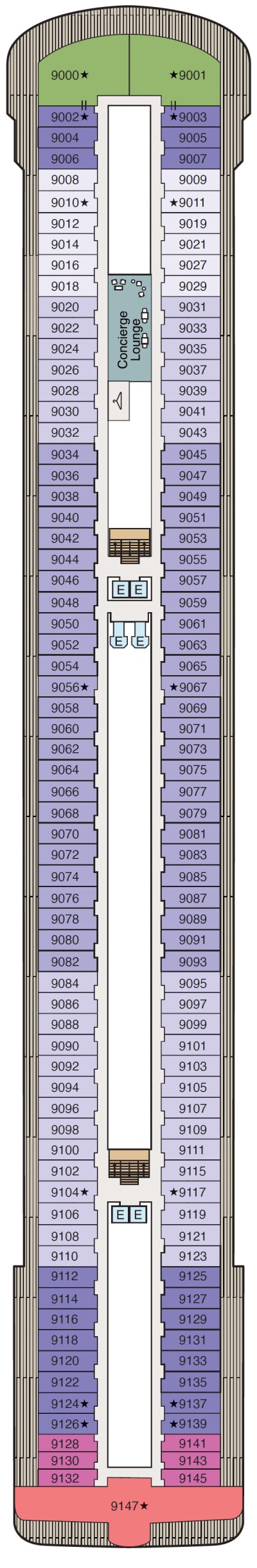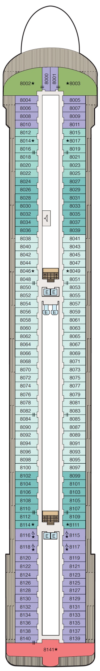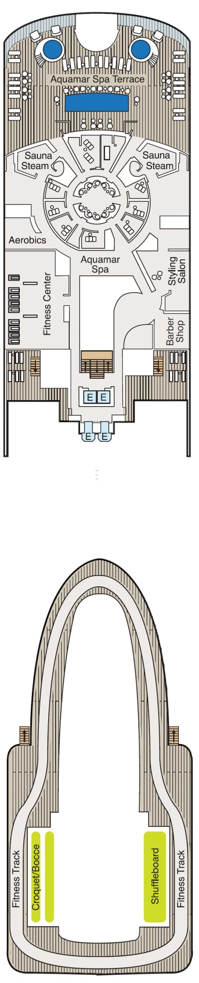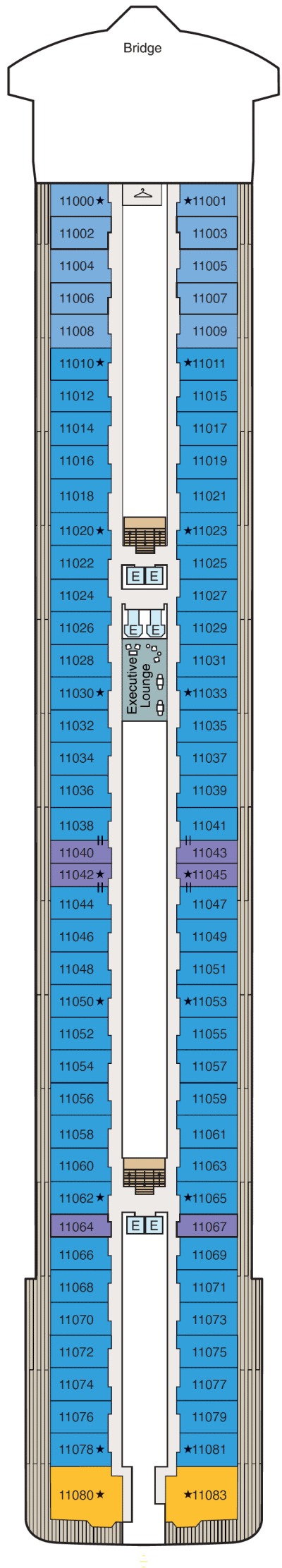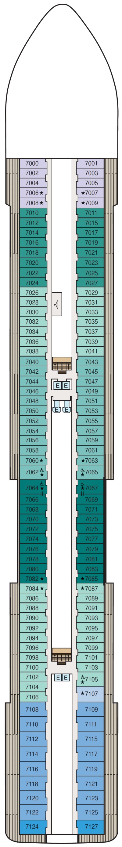 Découvrez les différents ponts du navire, chacun offrant des espaces et des ambiances uniques. Que ce soit pour profiter de la vue, vous détendre, vous divertir ou accéder aux installations principales, les ponts sont conçus pour faciliter votre expérience et vous permettre de vivre pleinement votre croisière.