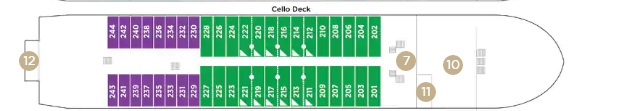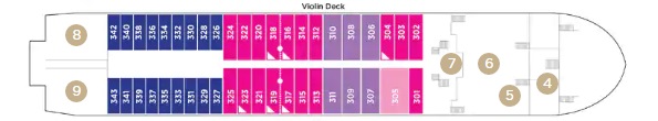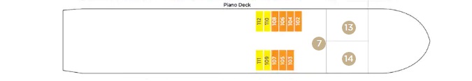 Découvrez les différents ponts du navire, chacun offrant des espaces et des ambiances uniques. Que ce soit pour profiter de la vue, vous détendre, vous divertir ou accéder aux installations principales, les ponts sont conçus pour faciliter votre expérience et vous permettre de vivre pleinement votre croisière.