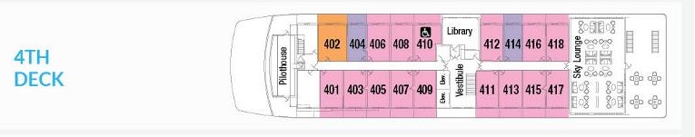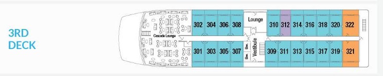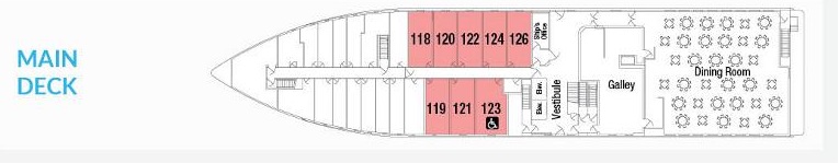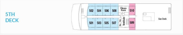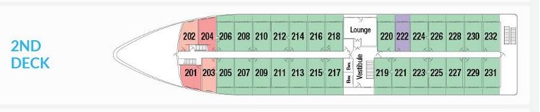 Découvrez les différents ponts du navire, chacun offrant des espaces et des ambiances uniques. Que ce soit pour profiter de la vue, vous détendre, vous divertir ou accéder aux installations principales, les ponts sont conçus pour faciliter votre expérience et vous permettre de vivre pleinement votre croisière.