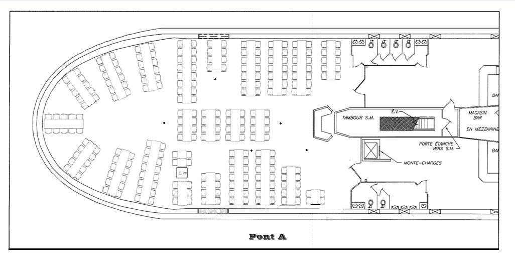 Découvrez les différents ponts du navire, chacun offrant des espaces et des ambiances uniques. Que ce soit pour profiter de la vue, vous détendre, vous divertir ou accéder aux installations principales, les ponts sont conçus pour faciliter votre expérience et vous permettre de vivre pleinement votre croisière.
