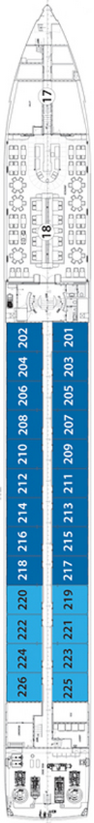 Découvrez les différents ponts du navire, chacun offrant des espaces et des ambiances uniques. Que ce soit pour profiter de la vue, vous détendre, vous divertir ou accéder aux installations principales, les ponts sont conçus pour faciliter votre expérience et vous permettre de vivre pleinement votre croisière.