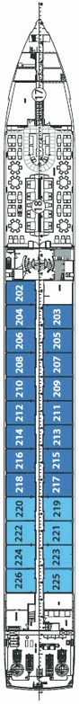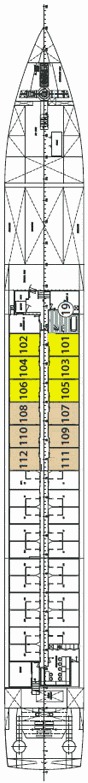 Découvrez les différents ponts du navire, chacun offrant des espaces et des ambiances uniques. Que ce soit pour profiter de la vue, vous détendre, vous divertir ou accéder aux installations principales, les ponts sont conçus pour faciliter votre expérience et vous permettre de vivre pleinement votre croisière.