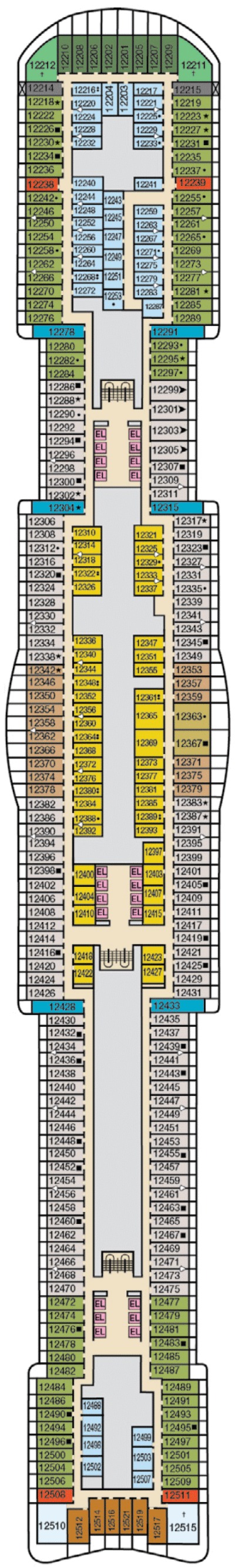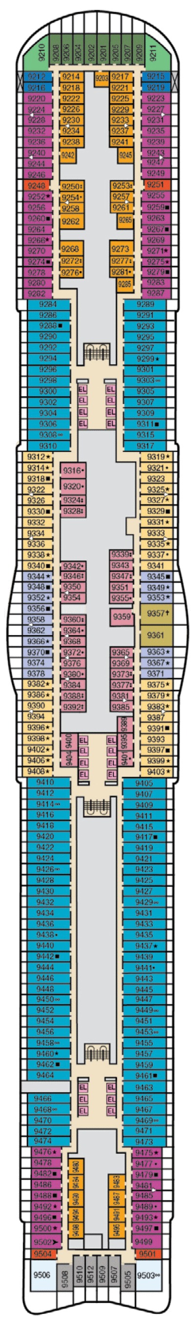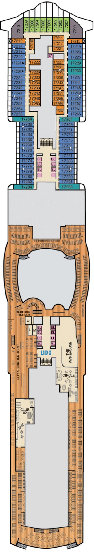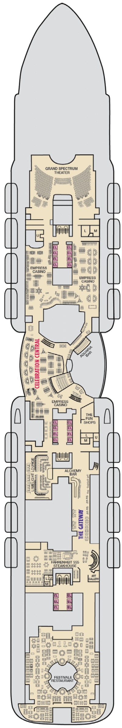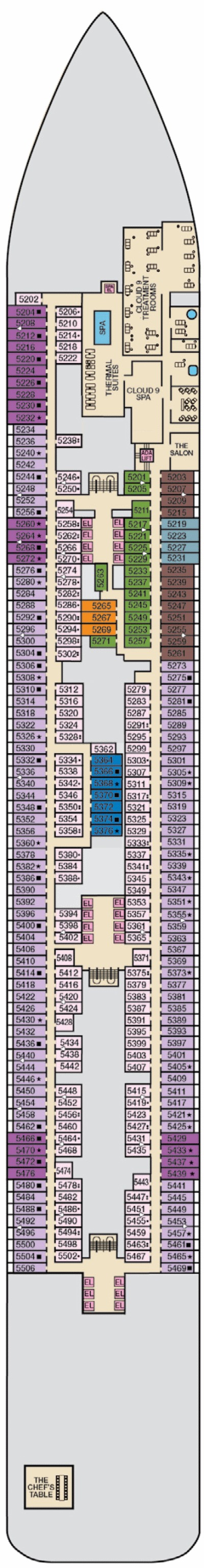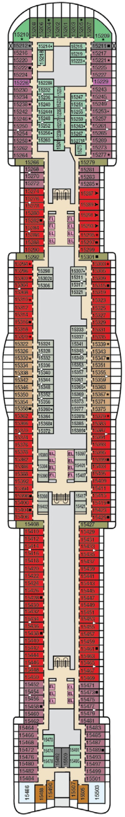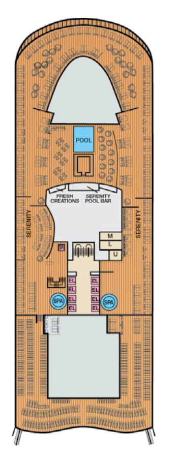 Découvrez les différents ponts du navire, chacun offrant des espaces et des ambiances uniques. Que ce soit pour profiter de la vue, vous détendre, vous divertir ou accéder aux installations principales, les ponts sont conçus pour faciliter votre expérience et vous permettre de vivre pleinement votre croisière.