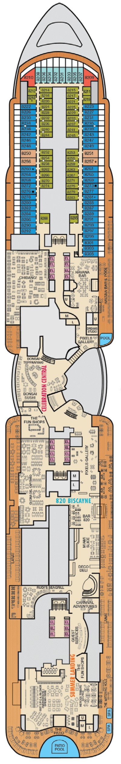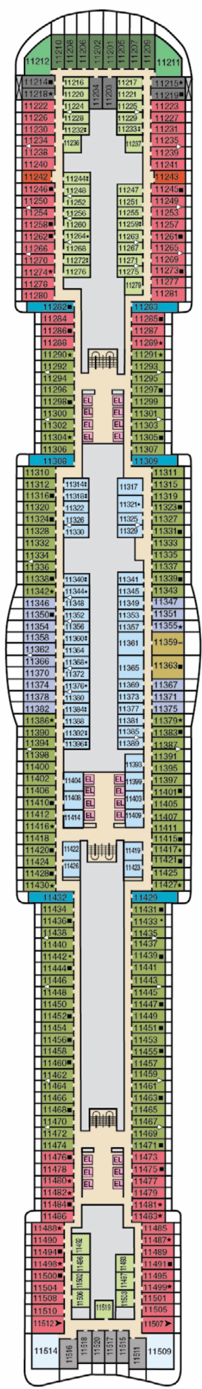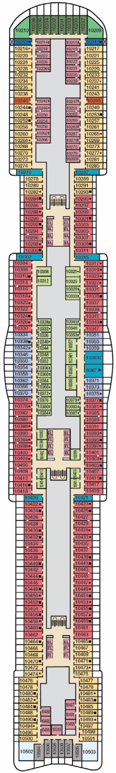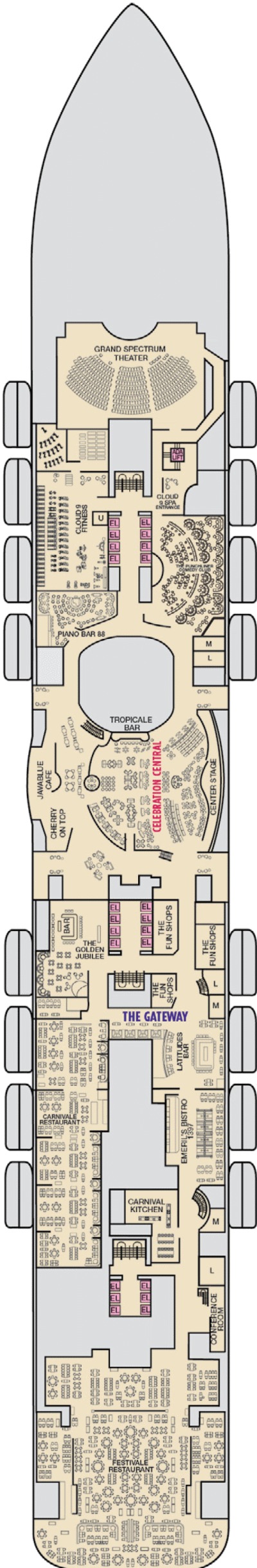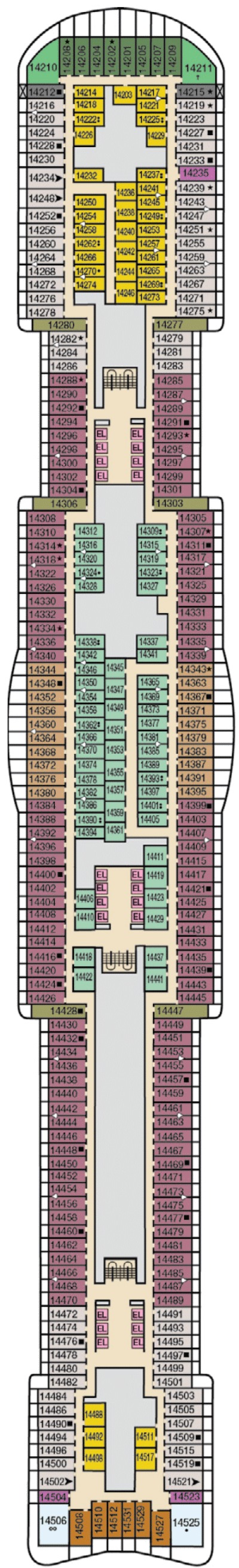 Découvrez les différents ponts du navire, chacun offrant des espaces et des ambiances uniques. Que ce soit pour profiter de la vue, vous détendre, vous divertir ou accéder aux installations principales, les ponts sont conçus pour faciliter votre expérience et vous permettre de vivre pleinement votre croisière.