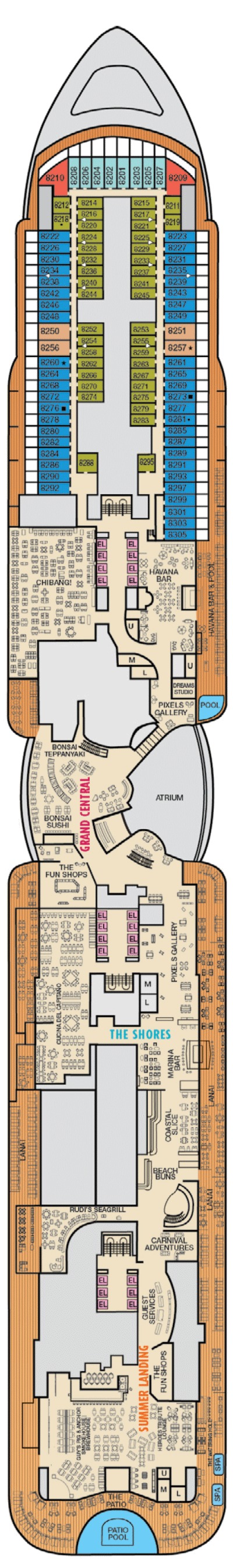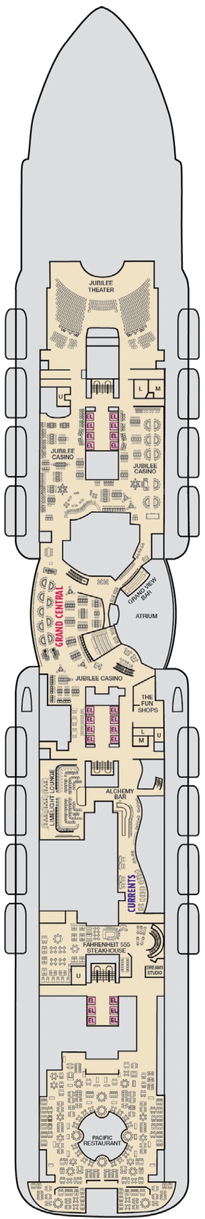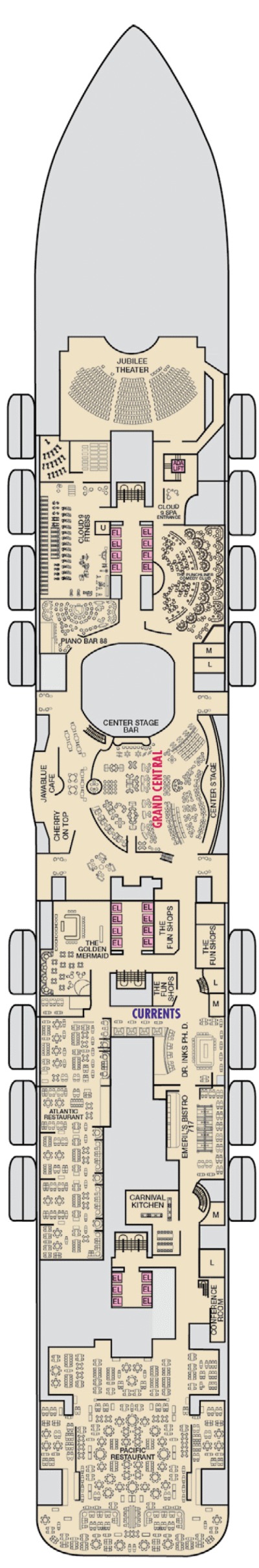 Montez à bord du troisième navire de la classe Excel, le Carnival Jubilee, et vivez l'expérience de croisière amusante et détendue que Carnival a perfectionnée. Le Carnival Jubilee partagera les caractéristiques de ses navires jumeaux que les passagers connaissent et adorent, notamment les montagnes russes BOLT primées et palpitantes, des options de restauration étendues, plus de 20 catégories de cabines différentes et plusieurs niveaux de suites spacieuses et luxueuses, ainsi qu'un superbe atrium à trois ponts sur le côté tribord du navire qui surplombe l'océan et se transforme en lieu de divertissement la nuit.