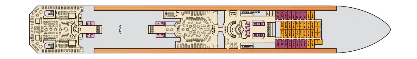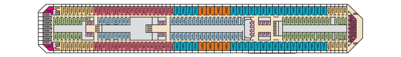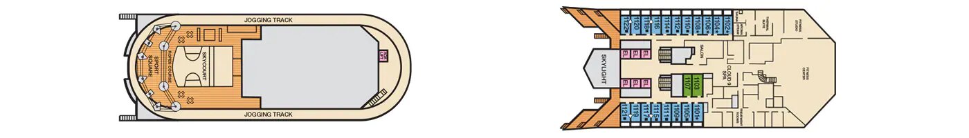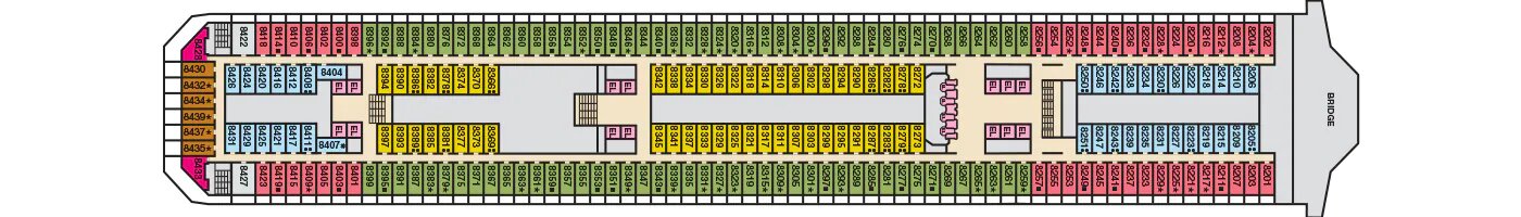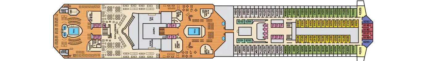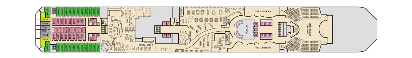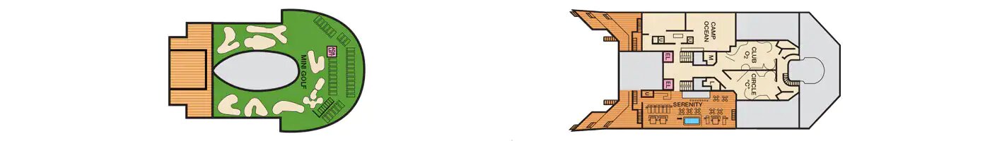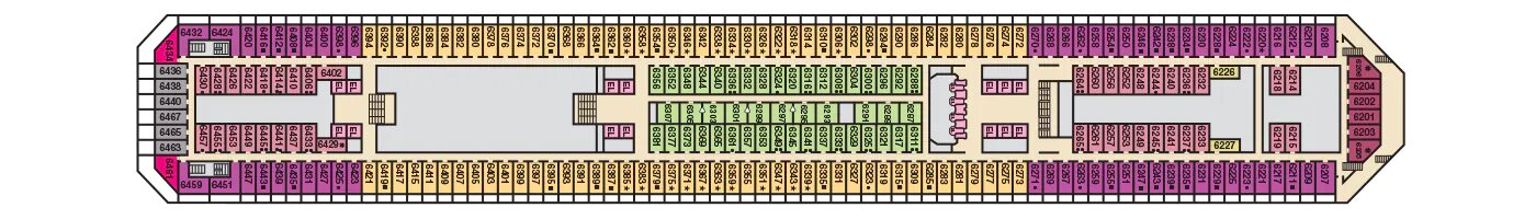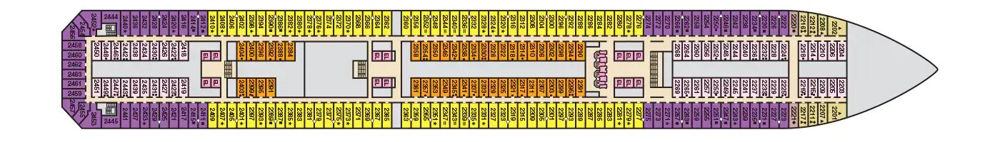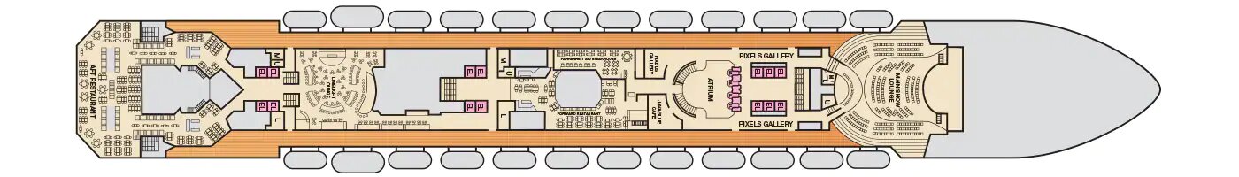 Découvrez les différents ponts du navire, chacun offrant des espaces et des ambiances uniques. Que ce soit pour profiter de la vue, vous détendre, vous divertir ou accéder aux installations principales, les ponts sont conçus pour faciliter votre expérience et vous permettre de vivre pleinement votre croisière.