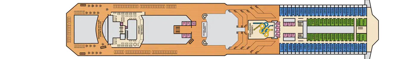 Le Carnival Radiance accueille ses passagers avec un thème tropical lumineux qui correspond à son nom. Ce navire offre de nombreuses possibilités de divertissement tout au long de la croisière. Le pub RedFrog et le Limelight Lounge proposent des divertissements pour les adultes à bord, tandis que WaterWorks et The Warehouse promettent du divertissement aux familles et aux passagers de tous âges. Après une journée d'aventures au port, les passagers peuvent retourner au navire et se détendre au bord de la piscine ou visiter le spa Cloud 9. Les options de restauration comprennent certains des favoris de Carnival tels que Bonsai Sushi et Farenheit 555 Steakhouse. À la fin de chaque journée, les passagers peuvent se détendre dans le confort de leur chambre, avec des options allant des cabines intérieures confortables aux luxueuses suites du capitaine avec des baies vitrées.