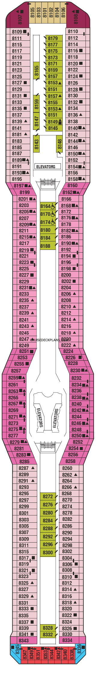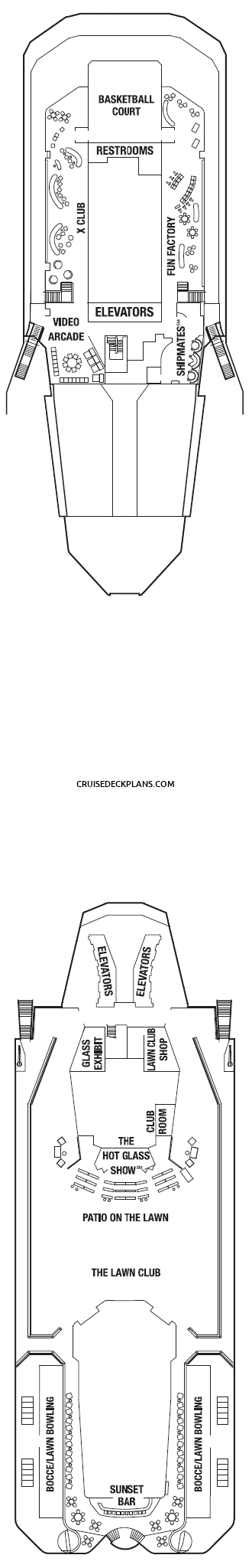 Découvrez les différents ponts du navire, chacun offrant des espaces et des ambiances uniques. Que ce soit pour profiter de la vue, vous détendre, vous divertir ou accéder aux installations principales, les ponts sont conçus pour faciliter votre expérience et vous permettre de vivre pleinement votre croisière.