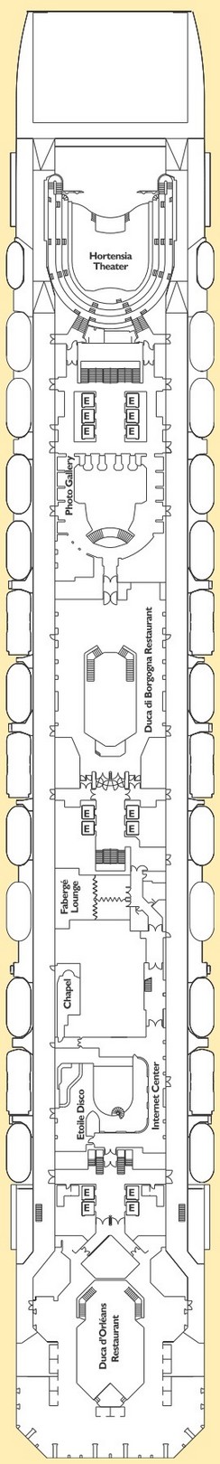 Sur les croisières en Europe qui partent de mai à octobre et sur les croisières dans les Caraïbes qui partent de décembre à mars, Costa exige qu'au moins un passager dans chaque cabine soit âgé de 25 ans ou plus.