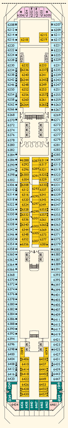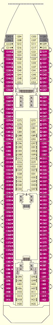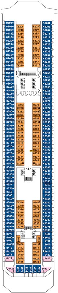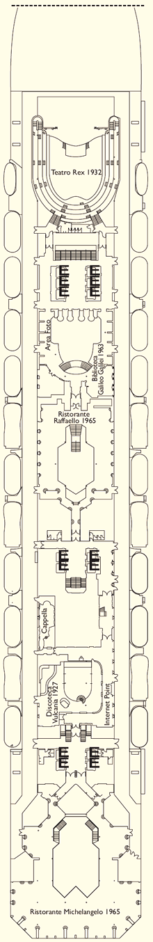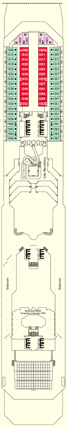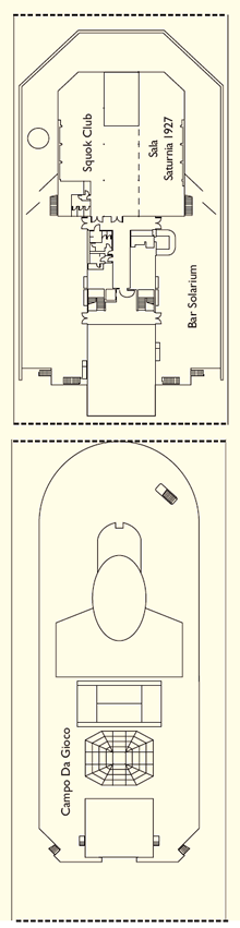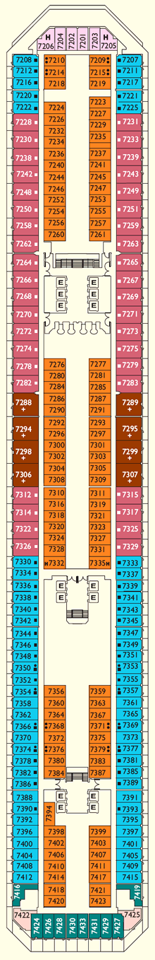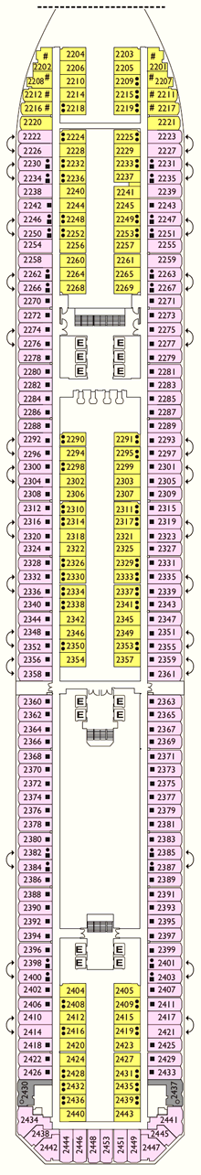 Découvrez les différents ponts du navire, chacun offrant des espaces et des ambiances uniques. Que ce soit pour profiter de la vue, vous détendre, vous divertir ou accéder aux installations principales, les ponts sont conçus pour faciliter votre expérience et vous permettre de vivre pleinement votre croisière.