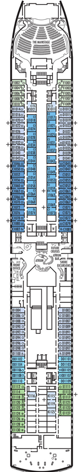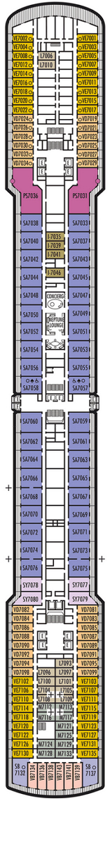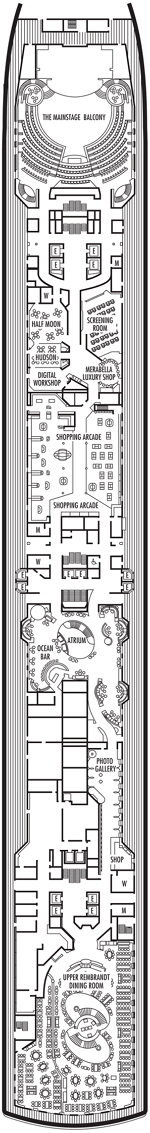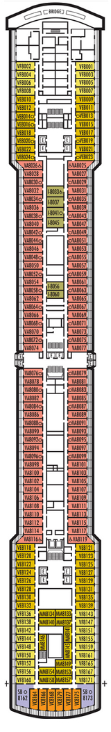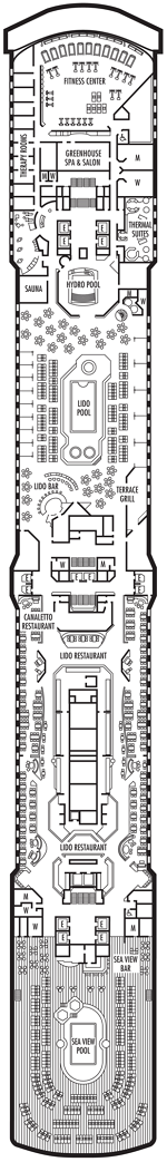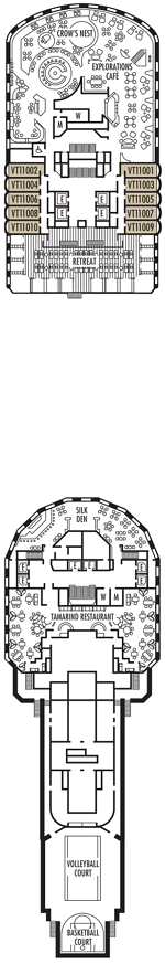 Découvrez les différents ponts du navire, chacun offrant des espaces et des ambiances uniques. Que ce soit pour profiter de la vue, vous détendre, vous divertir ou accéder aux installations principales, les ponts sont conçus pour faciliter votre expérience et vous permettre de vivre pleinement votre croisière.