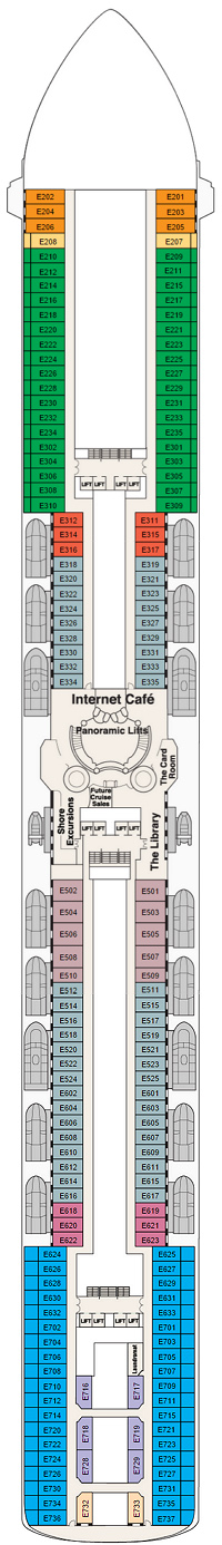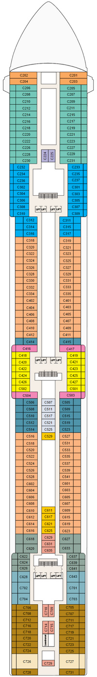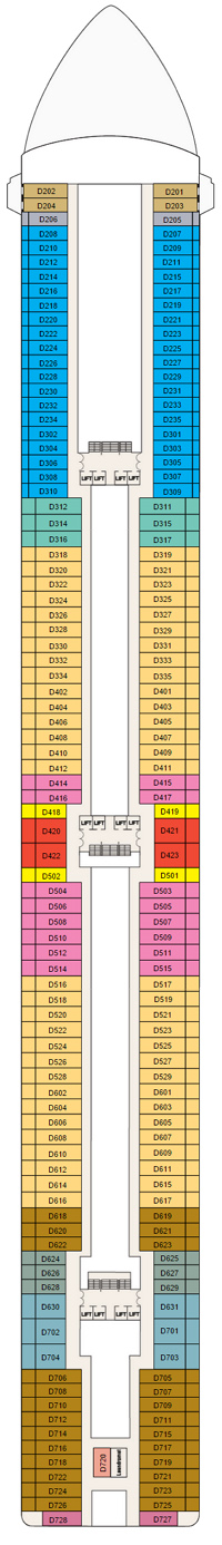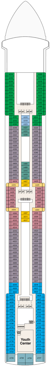 Découvrez les différents ponts du navire, chacun offrant des espaces et des ambiances uniques. Que ce soit pour profiter de la vue, vous détendre, vous divertir ou accéder aux installations principales, les ponts sont conçus pour faciliter votre expérience et vous permettre de vivre pleinement votre croisière.