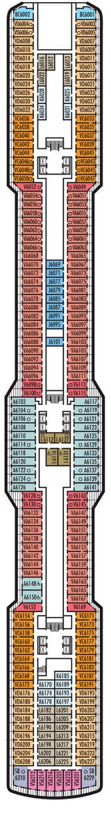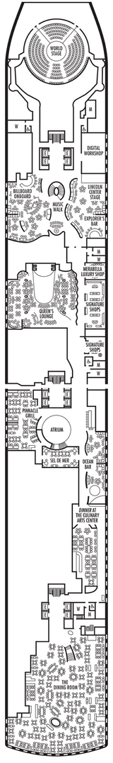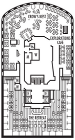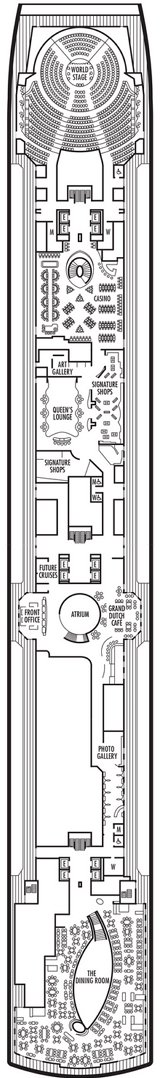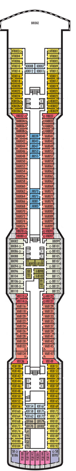 Découvrez les différents ponts du navire, chacun offrant des espaces et des ambiances uniques. Que ce soit pour profiter de la vue, vous détendre, vous divertir ou accéder aux installations principales, les ponts sont conçus pour faciliter votre expérience et vous permettre de vivre pleinement votre croisière.