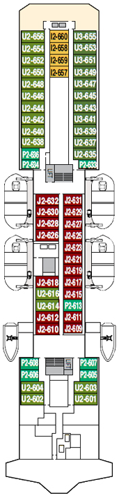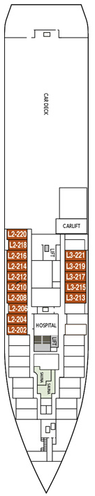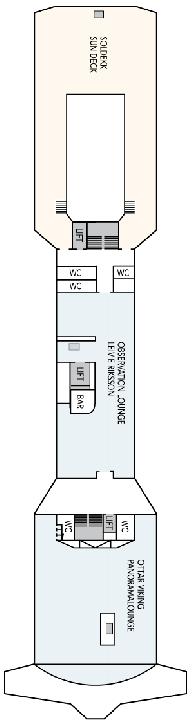 Découvrez les différents ponts du navire, chacun offrant des espaces et des ambiances uniques. Que ce soit pour profiter de la vue, vous détendre, vous divertir ou accéder aux installations principales, les ponts sont conçus pour faciliter votre expérience et vous permettre de vivre pleinement votre croisière.