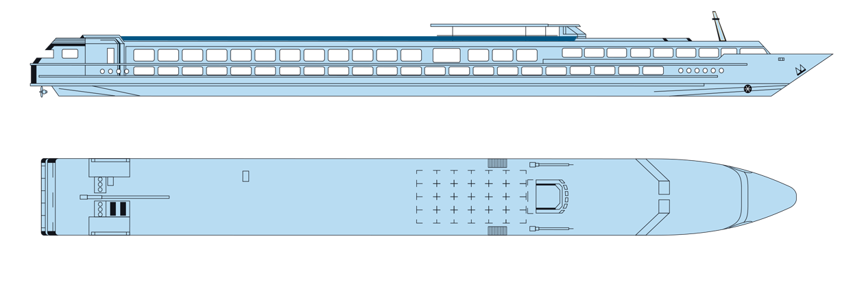 Découvrez les différents ponts du navire, chacun offrant des espaces et des ambiances uniques. Que ce soit pour profiter de la vue, vous détendre, vous divertir ou accéder aux installations principales, les ponts sont conçus pour faciliter votre expérience et vous permettre de vivre pleinement votre croisière.