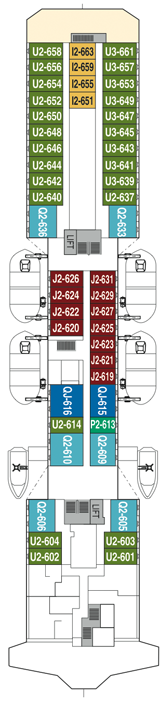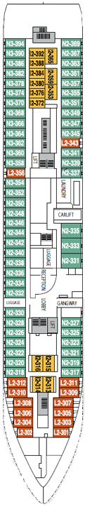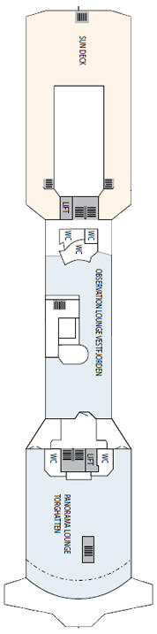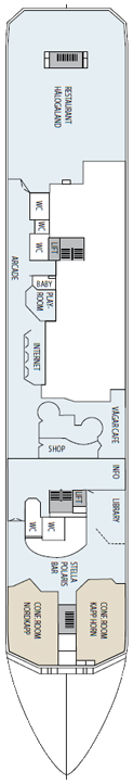 Découvrez les différents ponts du navire, chacun offrant des espaces et des ambiances uniques. Que ce soit pour profiter de la vue, vous détendre, vous divertir ou accéder aux installations principales, les ponts sont conçus pour faciliter votre expérience et vous permettre de vivre pleinement votre croisière.