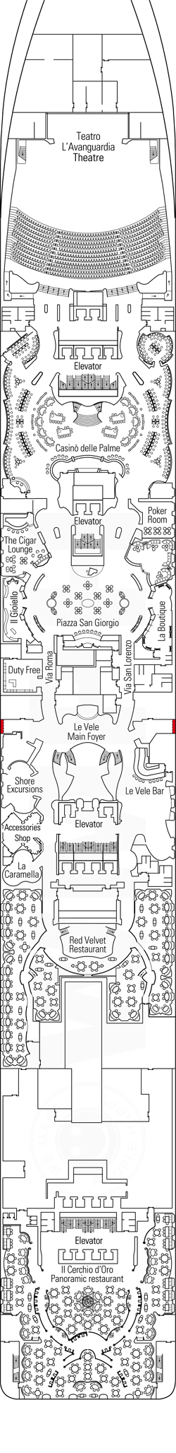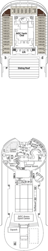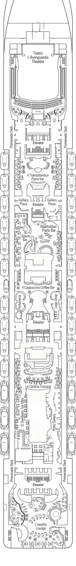 Le MSC Fantasia vous offre le meilleur de la Méditerranée même en mer. Découvrez le superbe casino ou le vaste théâtre L’Avanguardia de style Broadway. La discothèque Liquid Disco offre des vues panoramiques à couper le souffle pendant que vous dansez toute la nuit. L’exotique spa Aurea propose repos et détente grâce à des massages, des bains turcs, un sauna, une salle de relaxation et bien plus encore. Les croisiéristes actifs apprécieront le centre sportif Arena, les nombreuses piscines et le centre de remise en forme entièrement équipé. Il y a beaucoup de divertissements et de jeux pour toute la famille avec un cinéma 4D, une galerie photo, un simulateur de F1, une salle d’arcade, une cyberbibliothèque, une galerie d’art, des zones commerciales et de nombreux espaces dédiés aux enfants. Les amateurs de sport apprécieront le tennis, le basket-ball, le mini-golf et la piste de jogging. Toute la famille s’offrira une croisière de rêve à bord du Fantasia.