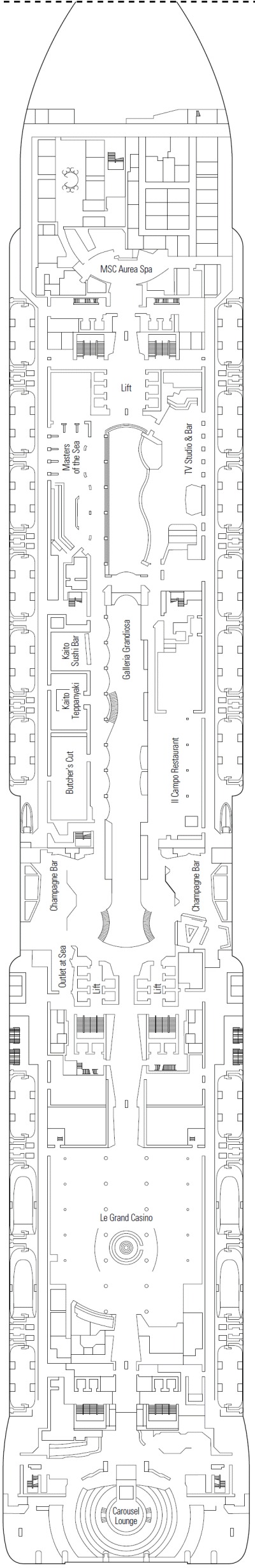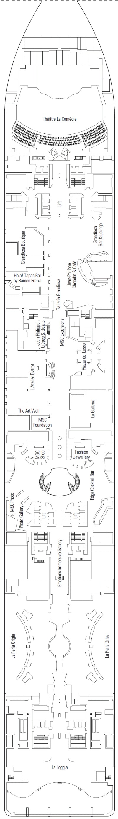 Inspiré de ses navires jumeaux, le MSC Grandiosa offre à ses passagers plus d'espace à bord pour explorer et des innovations passionnantes à l'échelle du navire. La Galleria à bord propose des opportunités de shopping, des restaurants et des soirées pleines de fêtes et de divertissements. La piscine extérieure permet aux passagers de se détendre au soleil pendant leur navigation, et le spa Aurea offre un moyen de se détendre et de se revitaliser après une journée bien remplie au port ou une séance de gym. Le Grandiosa propose également le MSC Yacht Club, un havre exclusif avec accès au Sun Deck et au Top Sail Lounge. Les autres options de divertissement à bord comprennent le Carousel Lounge, le comedy club, un parc aquatique pour les jeunes et les moins jeunes, et bien d'autres moyens de passer des heures de plaisir.