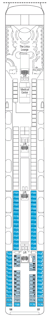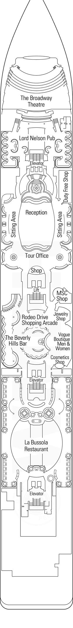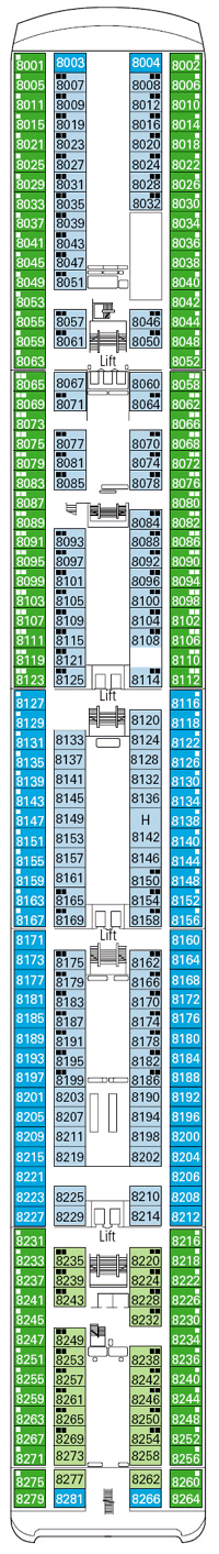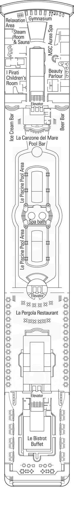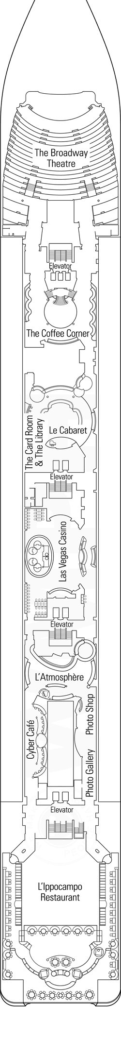 Découvrez les différents ponts du navire, chacun offrant des espaces et des ambiances uniques. Que ce soit pour profiter de la vue, vous détendre, vous divertir ou accéder aux installations principales, les ponts sont conçus pour faciliter votre expérience et vous permettre de vivre pleinement votre croisière.