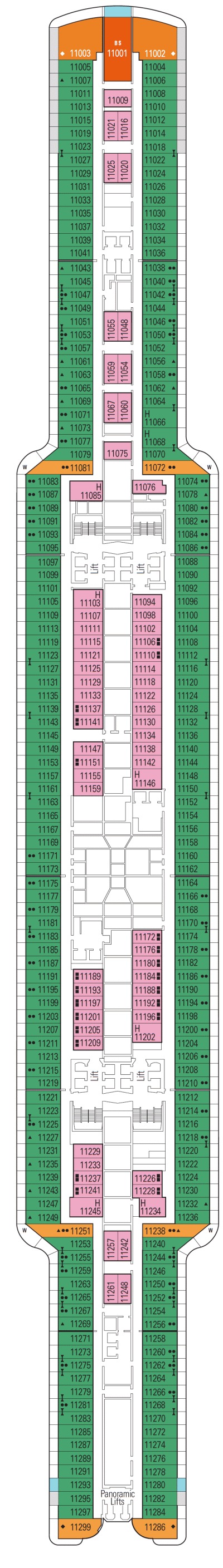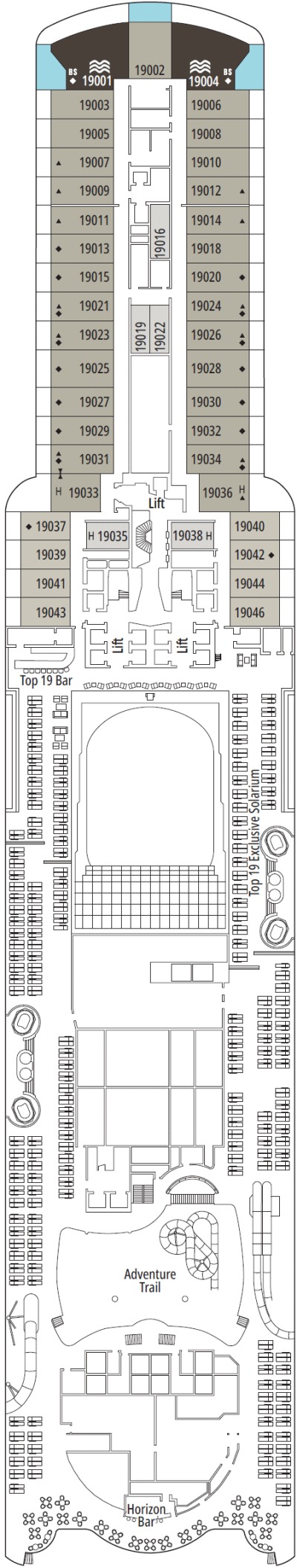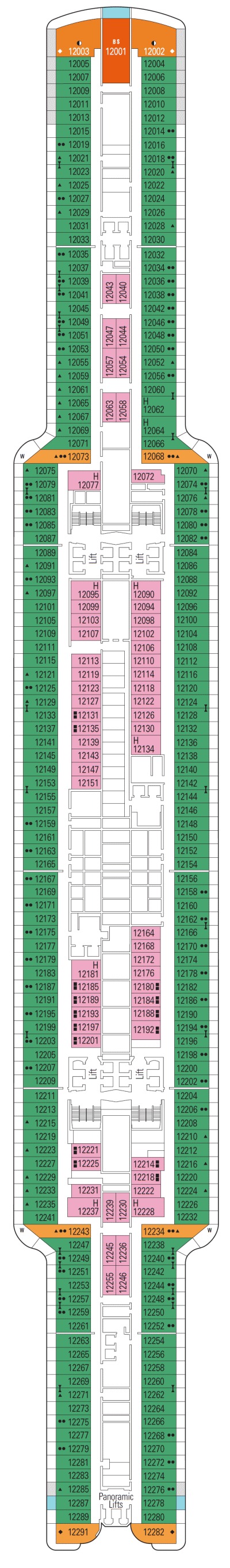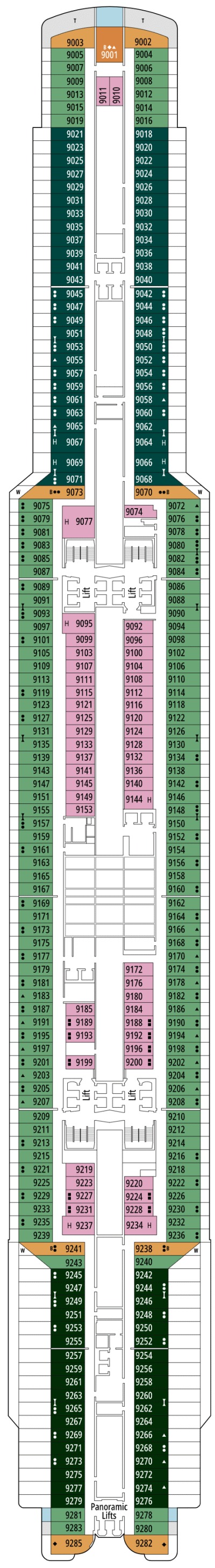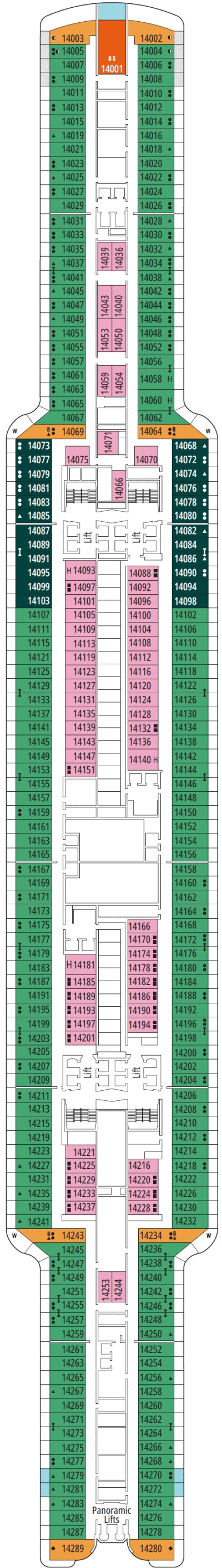 Découvrez les différents ponts du navire, chacun offrant des espaces et des ambiances uniques. Que ce soit pour profiter de la vue, vous détendre, vous divertir ou accéder aux installations principales, les ponts sont conçus pour faciliter votre expérience et vous permettre de vivre pleinement votre croisière.