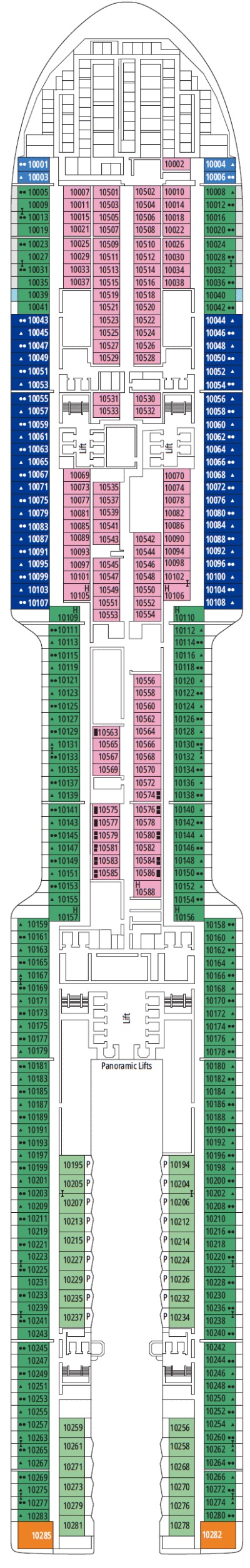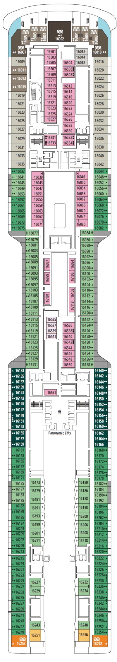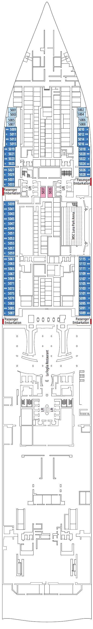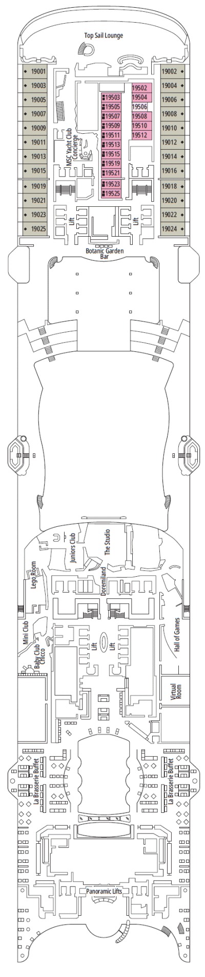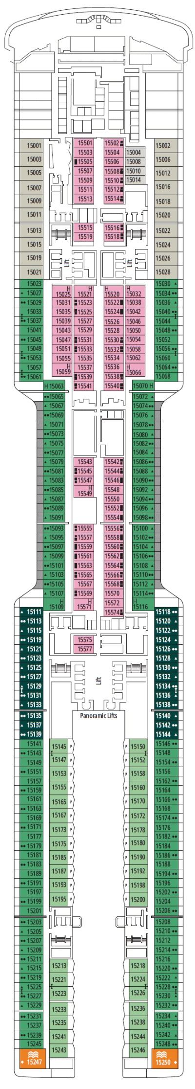 Découvrez les différents ponts du navire, chacun offrant des espaces et des ambiances uniques. Que ce soit pour profiter de la vue, vous détendre, vous divertir ou accéder aux installations principales, les ponts sont conçus pour faciliter votre expérience et vous permettre de vivre pleinement votre croisière.