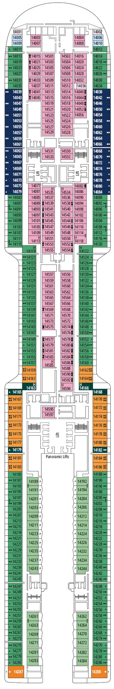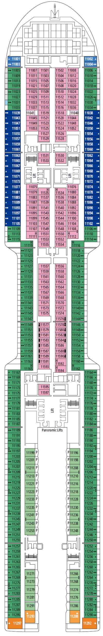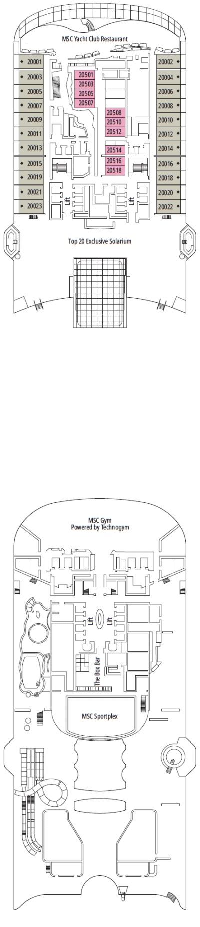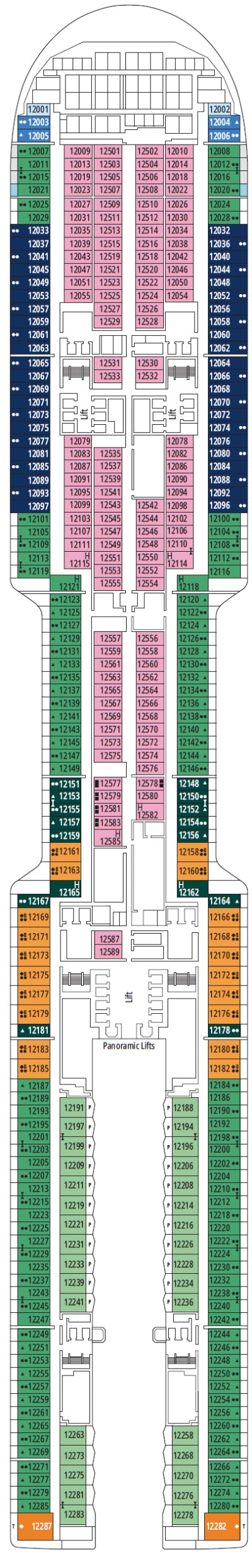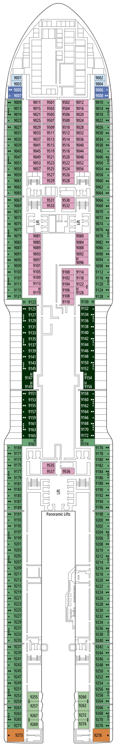 Découvrez les différents ponts du navire, chacun offrant des espaces et des ambiances uniques. Que ce soit pour profiter de la vue, vous détendre, vous divertir ou accéder aux installations principales, les ponts sont conçus pour faciliter votre expérience et vous permettre de vivre pleinement votre croisière.