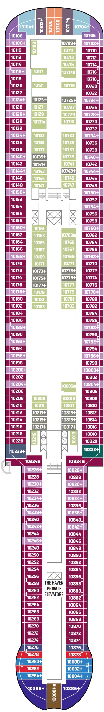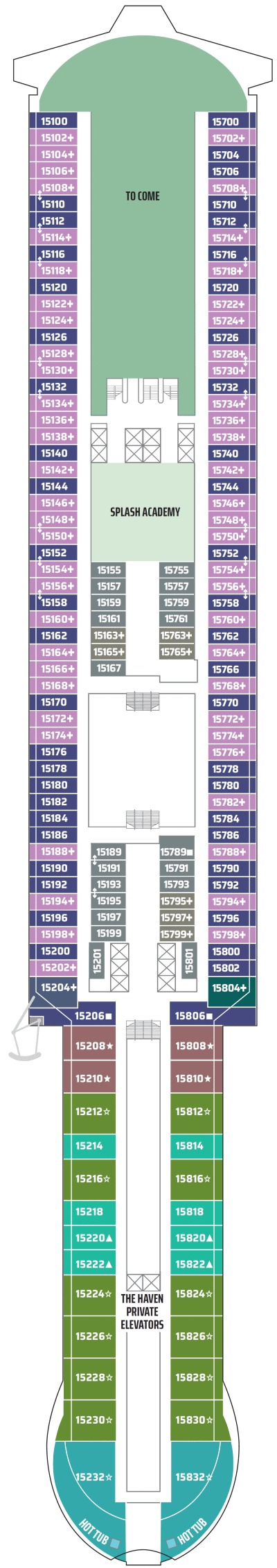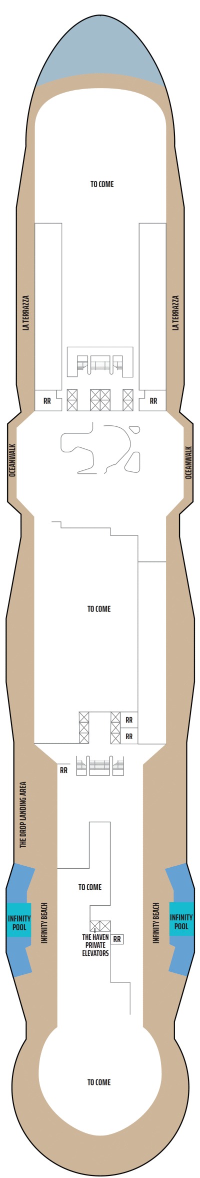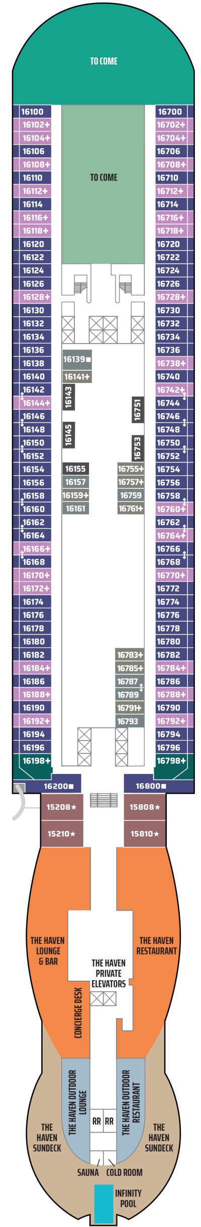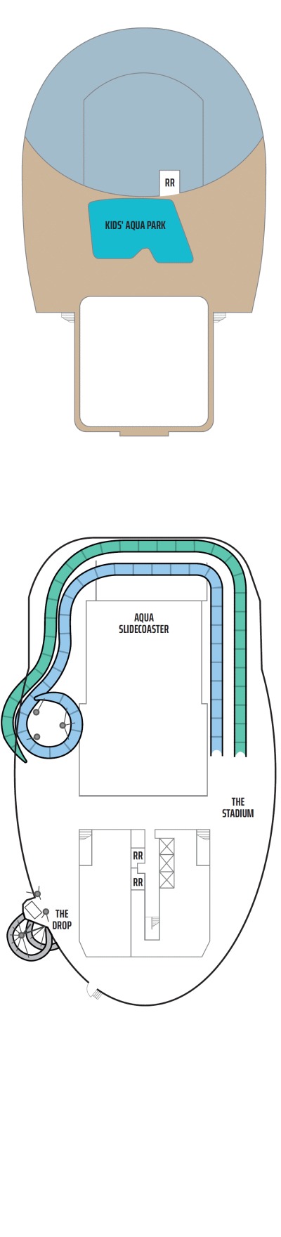 Le Norwegian Aqua est le premier navire de la superbe classe Prima Plus. Le navire conserve l'héritage de style et de diversité de Norwegian et dispose d'un espace extérieur inégalé à bord, permettant aux passagers de profiter de la vaste vue sur la mer. Explorez le vaste Ocean Boulevard et The Waterfront®, qui s'étendent sur tout le pont et proposent une variété d'expériences de restauration, de shopping et de divertissement. Faites un tour sur l'Aqua Slidecoaster pour des sensations fortes ou jouez sur le Glow Court, un terrain de sport LED immersif de haute technologie. Située de chaque côté du navire sur Ocean Boulevard, la grande plage Infinity Beach du Norwegian Aqua offre des vues panoramiques et une piscine à débordement. Il existe des hébergements pour tous les types de passagers, allant des cabines simples aux suites familiales.