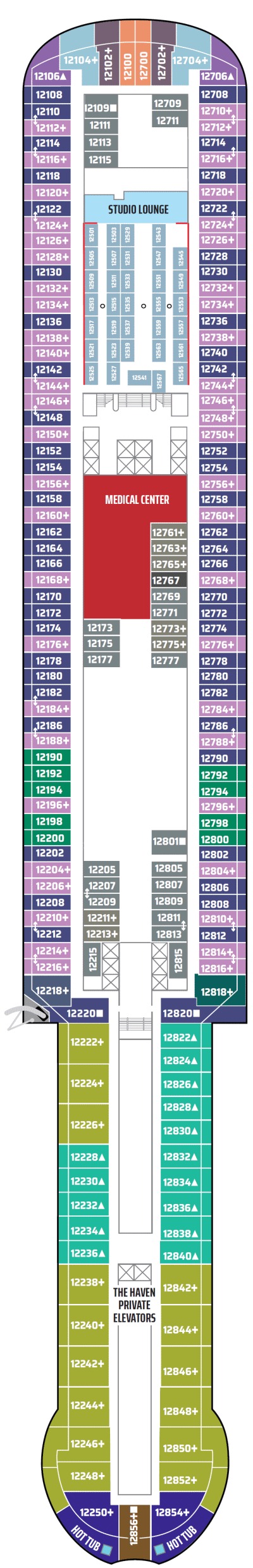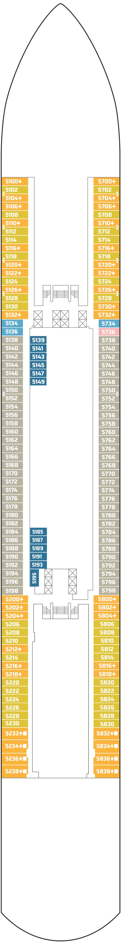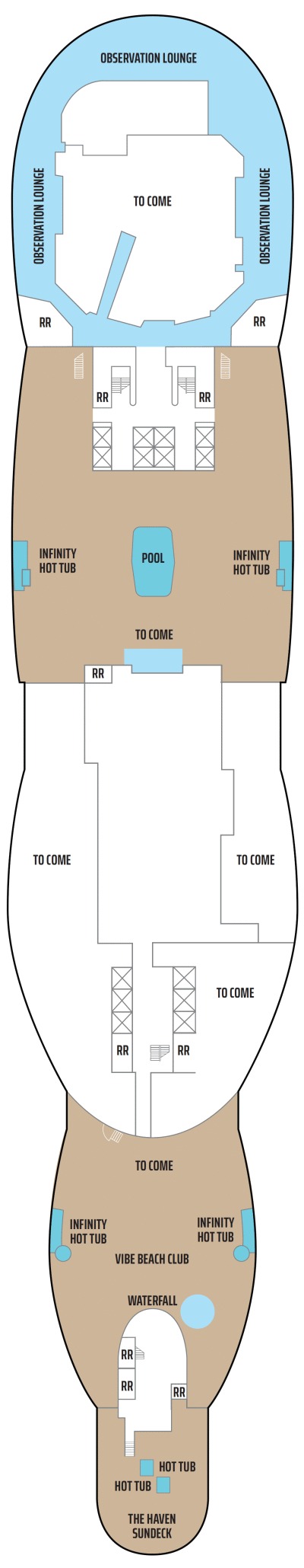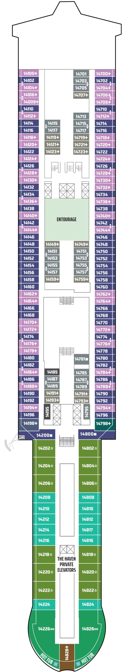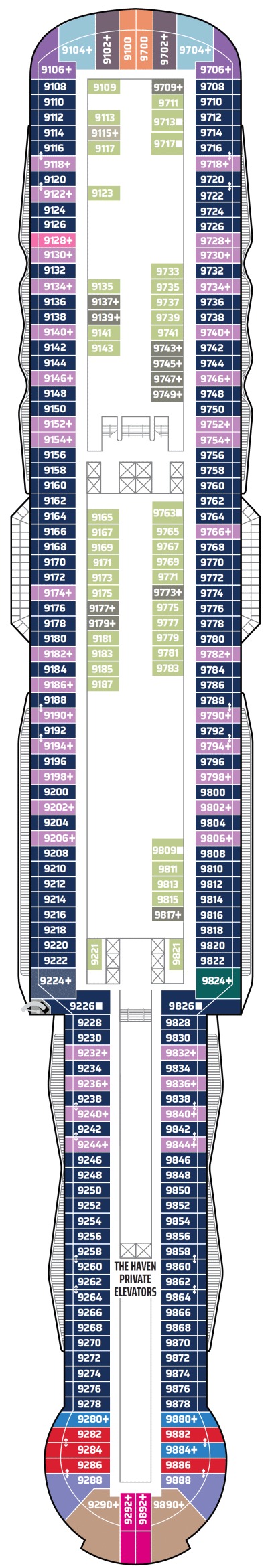 Le Norwegian Aqua est le premier navire de la superbe classe Prima Plus. Le navire conserve l'héritage de style et de diversité de Norwegian et dispose d'un espace extérieur inégalé à bord, permettant aux passagers de profiter de la vaste vue sur la mer. Explorez le vaste Ocean Boulevard et The Waterfront®, qui s'étendent sur tout le pont et proposent une variété d'expériences de restauration, de shopping et de divertissement. Faites un tour sur l'Aqua Slidecoaster pour des sensations fortes ou jouez sur le Glow Court, un terrain de sport LED immersif de haute technologie. Située de chaque côté du navire sur Ocean Boulevard, la grande plage Infinity Beach du Norwegian Aqua offre des vues panoramiques et une piscine à débordement. Il existe des hébergements pour tous les types de passagers, allant des cabines simples aux suites familiales.