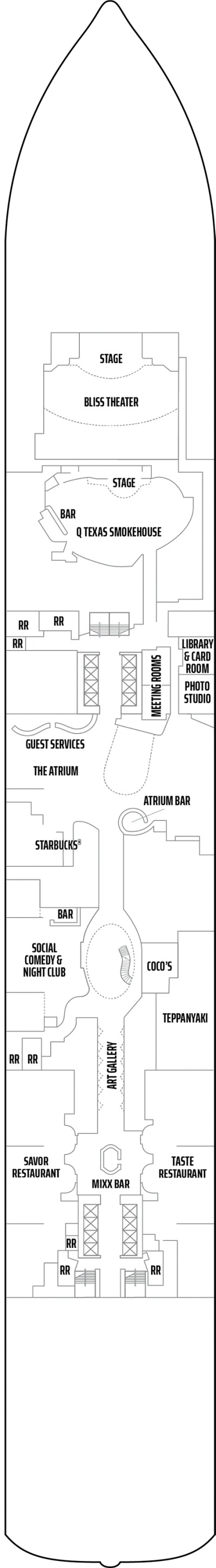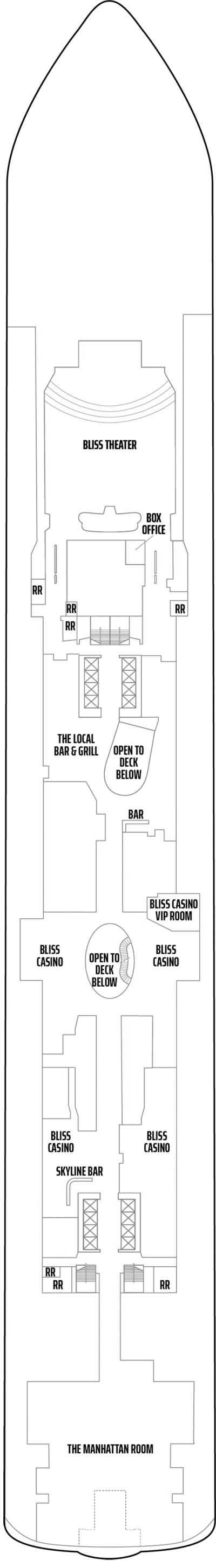Découvrez le meilleur de la restauration, du divertissement et du plaisir en mer à bord du Norwegian Bliss. Le navire a été construit sur mesure et dispose d'un salon d'observation révolutionnaire à 180 degrés, pour que vous ne manquiez aucun moment en mer. Il y a plusieurs bars à bord, dont le Spice H2O réservé aux adultes et le Humidor Cigar Lounge. Le casino propose des jeux palpitants pour tenter votre chance. Les familles apprécieront la plus grande piste de course en mer, une piste de compétition à deux niveaux où vous pourrez tester vos compétences de conduite. Vous pouvez également vous rendre sur place pour jouer au laser tag, regarder un film au cinéma ou faire un tour sur le toboggan aquatique. L'Entourage Teen Club propose des jeux, des soirées dansantes, des films, de l'art et de la musique, le tout exclusivement pour les adolescents. Les plus jeunes enfants profiteront de leur propre espace à la Splash Academy. Évadez-vous et faites-vous chouchouter au Mandara Spa ou faites une séance d'entraînement rapide au centre de remise en forme. Avec plusieurs salles à manger principales, des salles à manger spécialisées et un service en chambre, il existe une excellente cuisine pour chaque passager.