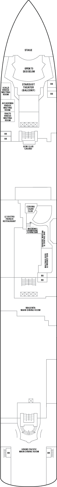 Avec une multitude de choix de restauration, d'équipements, de cabines luxueuses et de croisières Freestyle, le Norwegian Gem a tout pour plaire. Savourez un en-cas décontracté ou l'un des restaurants les plus haut de gamme, qui proposent une cuisine française, des fruits de mer, des steaks, japonaise et italienne. Les enfants s'amuseront en mer dans leur propre espace adapté à leur âge, la Splash Academy. Le spa Mandara propose des soins pour apaiser l'esprit et le corps, de la piscine de thalassothérapie au sauna. Une piste de jogging, des terrains de sport et un centre de remise en forme feront le bonheur des croisiéristes actifs. La vie nocturne sur le Gem est tout aussi palpitante. Découvrez quelques-uns des nombreux bars et salons ou rendez-vous au casino pour tenter votre chance. Le théâtre propose des spectacles spectaculaires pour tous les goûts. Les autres commodités comprennent une galerie d'art, une bibliothèque, une salle de cartes et bien plus encore.