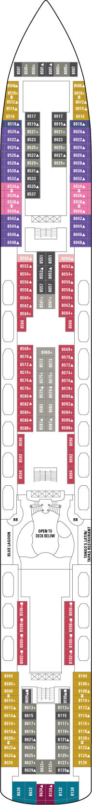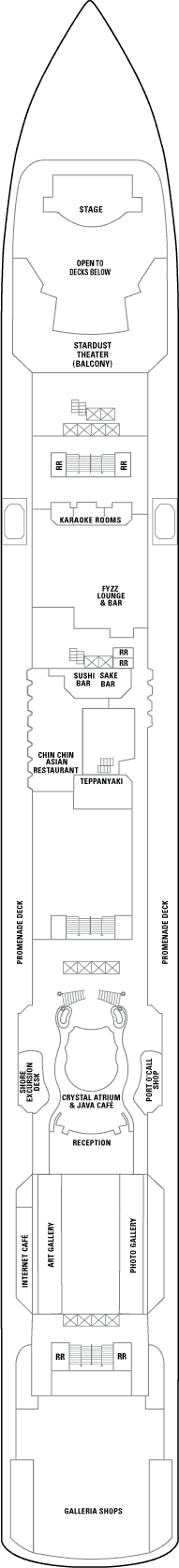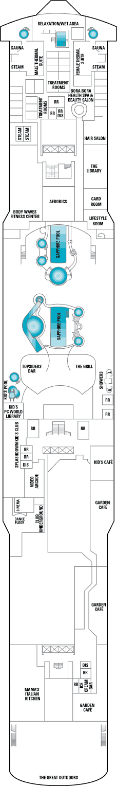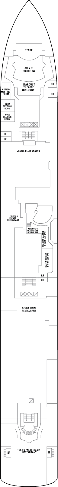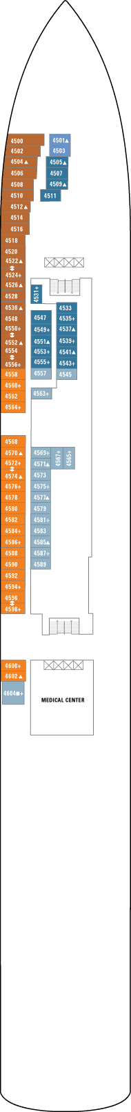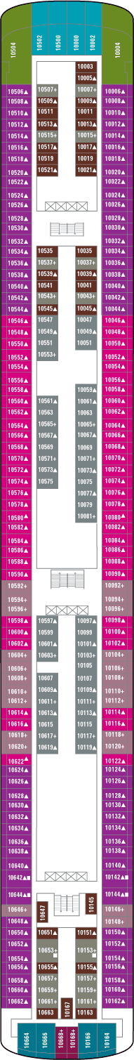 Découvrez les différents ponts du navire, chacun offrant des espaces et des ambiances uniques. Que ce soit pour profiter de la vue, vous détendre, vous divertir ou accéder aux installations principales, les ponts sont conçus pour faciliter votre expérience et vous permettre de vivre pleinement votre croisière.
