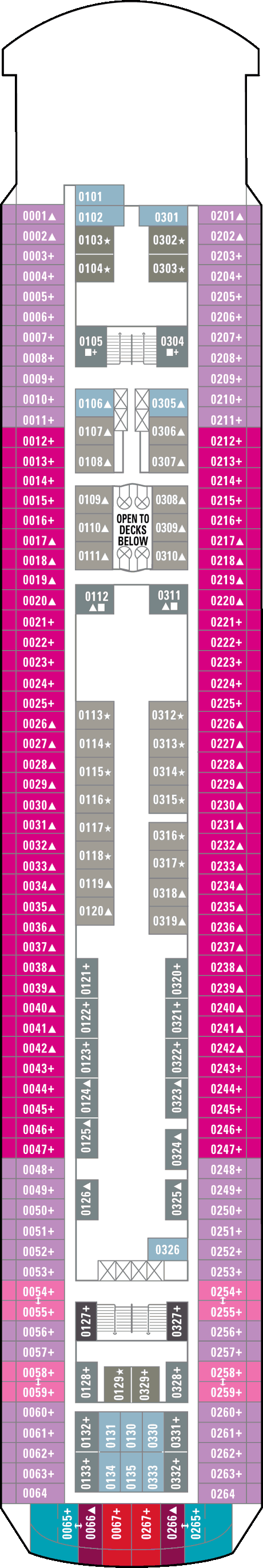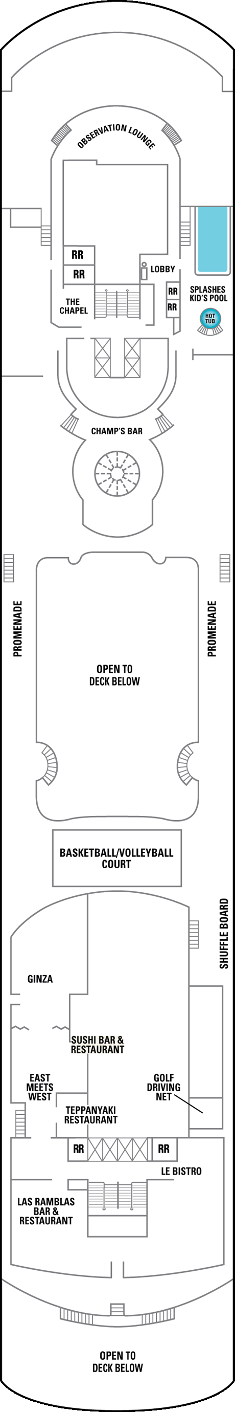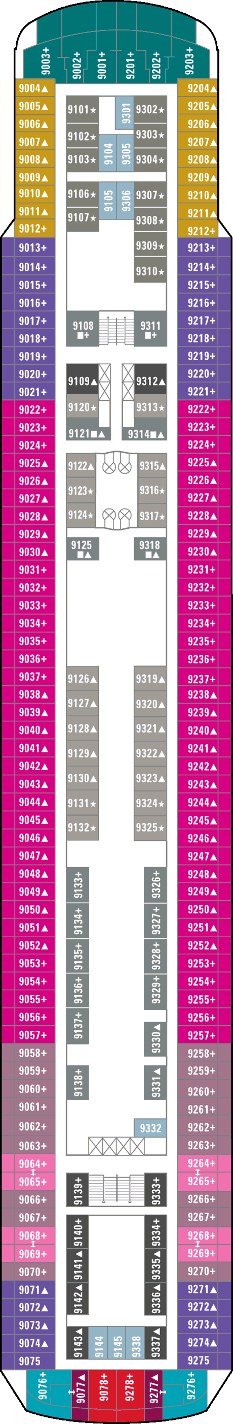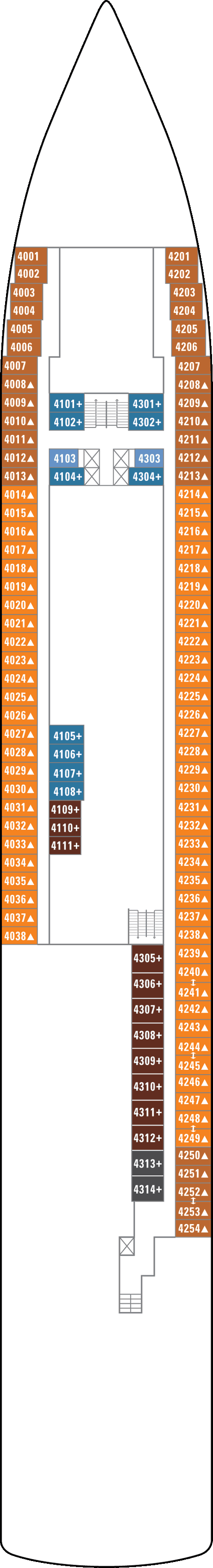 Découvrez les différents ponts du navire, chacun offrant des espaces et des ambiances uniques. Que ce soit pour profiter de la vue, vous détendre, vous divertir ou accéder aux installations principales, les ponts sont conçus pour faciliter votre expérience et vous permettre de vivre pleinement votre croisière.