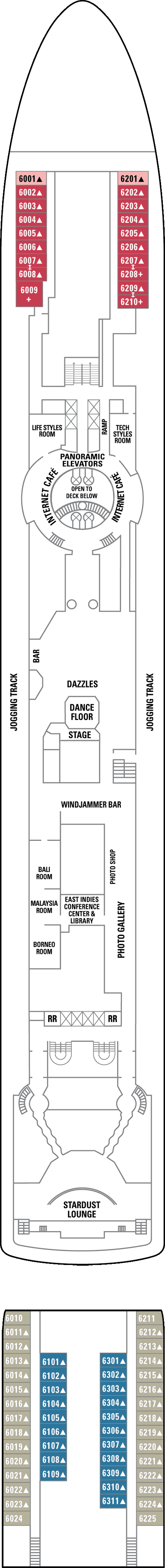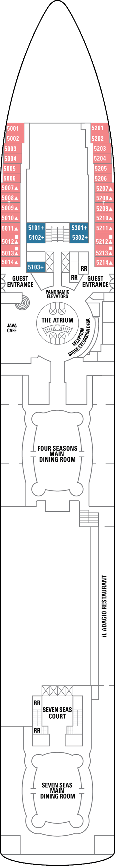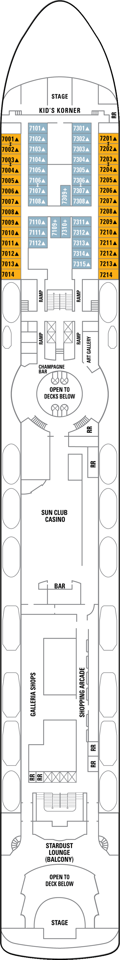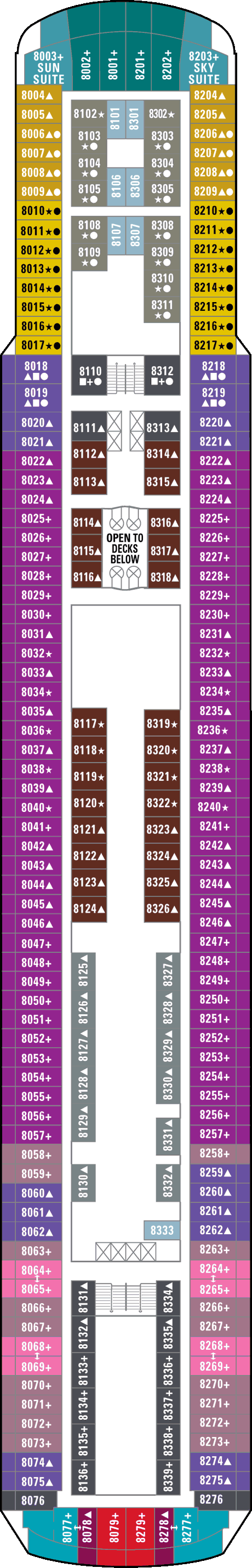 Découvrez les différents ponts du navire, chacun offrant des espaces et des ambiances uniques. Que ce soit pour profiter de la vue, vous détendre, vous divertir ou accéder aux installations principales, les ponts sont conçus pour faciliter votre expérience et vous permettre de vivre pleinement votre croisière.