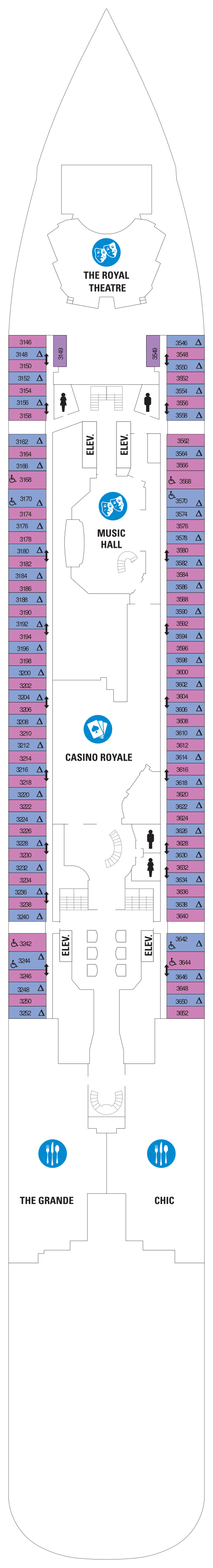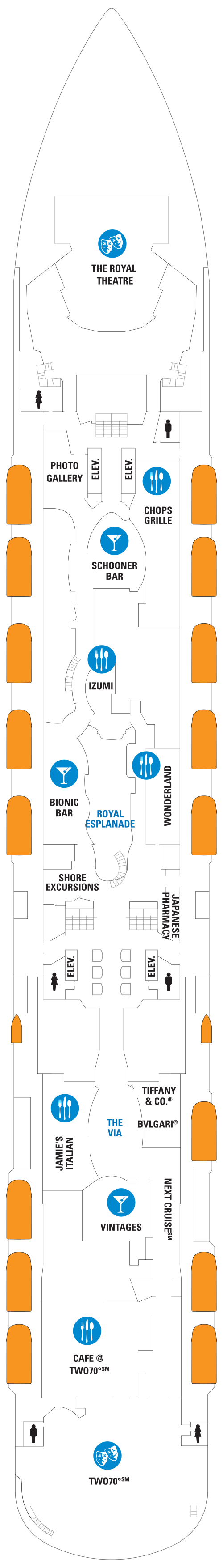 Quantum of the Seas est le pionnier original de la classe Quantum. Découvrez des expériences de niveau supérieur tout en explorant les fjords captivants de l'Alaska ou la côte ouest de l'Australie. Défiez la gravité sans quitter le navire sur RipCord by iFLY, le premier simulateur de parachutisme en mer ou attrapez quelques vagues sur FlowRider. Profitez d'une vue à 360 degrés tous les jours de l'année sur North Star, qui vous offrira un nouvel éclairage sur vos destinations préférées. Il y a même un bar pour prendre un verre tout en admirant le paysage époustouflant. Les repas élégants vont des sushis fraîchement roulés chez Izumi à la superbe cuisine italienne du restaurant italien de Jamie Oliver. Le SeaPlex est le plus grand espace d'activités intérieur en mer, avec une école de trapèze, un terrain de basket grandeur nature et la toute première patinoire à roulettes et autos tamponneuses en mer. Des jeux vidéo et une cabine de DJ flottante complètent cet espace de divertissement pour toute la famille. Les enfants ont leur propre espace entièrement équipé à Adventure Ocean, vous pouvez donc vous rendre au spa ou au Solarium, un refuge réservé aux adultes. À votre retour dans votre luxueuse cabine, vous pourrez profiter de votre propre espace pour vous détendre et vous ressourcer pour votre prochaine aventure.