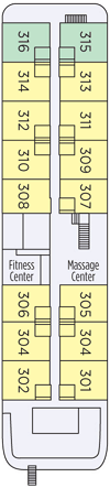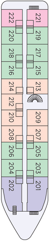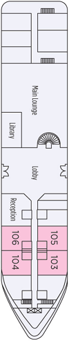 Découvrez les différents ponts du navire, chacun offrant des espaces et des ambiances uniques. Que ce soit pour profiter de la vue, vous détendre, vous divertir ou accéder aux installations principales, les ponts sont conçus pour faciliter votre expérience et vous permettre de vivre pleinement votre croisière.