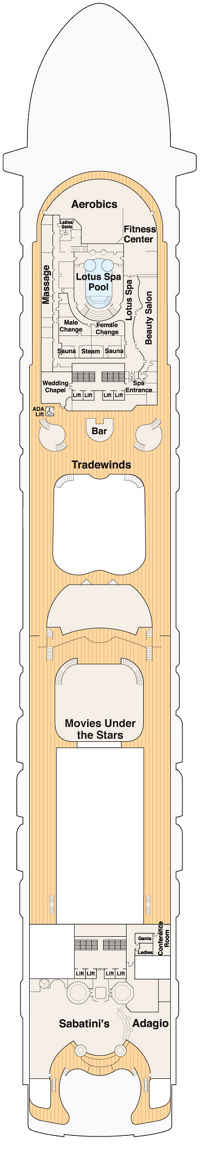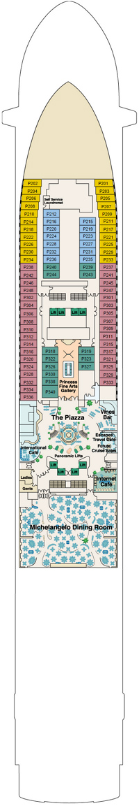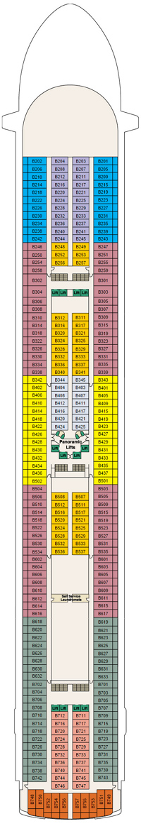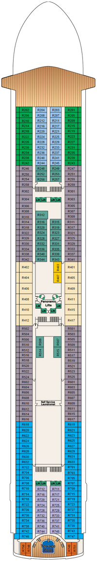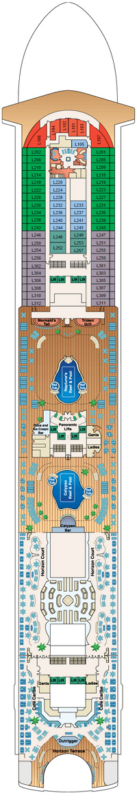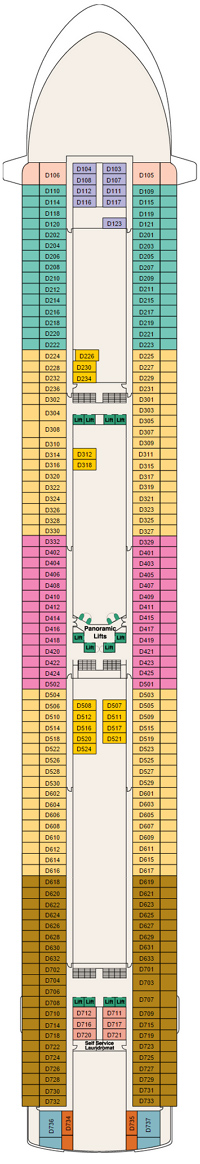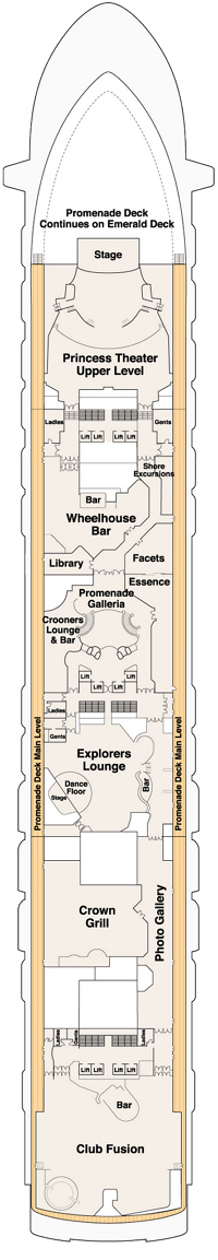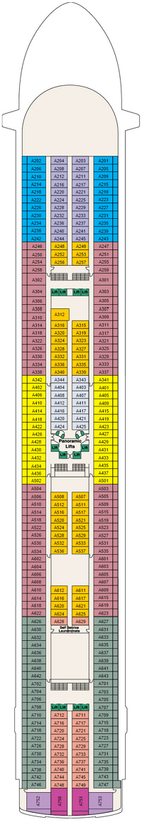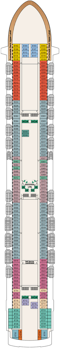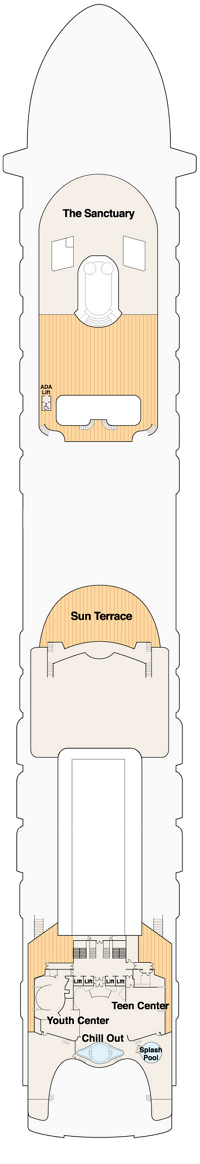 Découvrez les différents ponts du navire, chacun offrant des espaces et des ambiances uniques. Que ce soit pour profiter de la vue, vous détendre, vous divertir ou accéder aux installations principales, les ponts sont conçus pour faciliter votre expérience et vous permettre de vivre pleinement votre croisière.