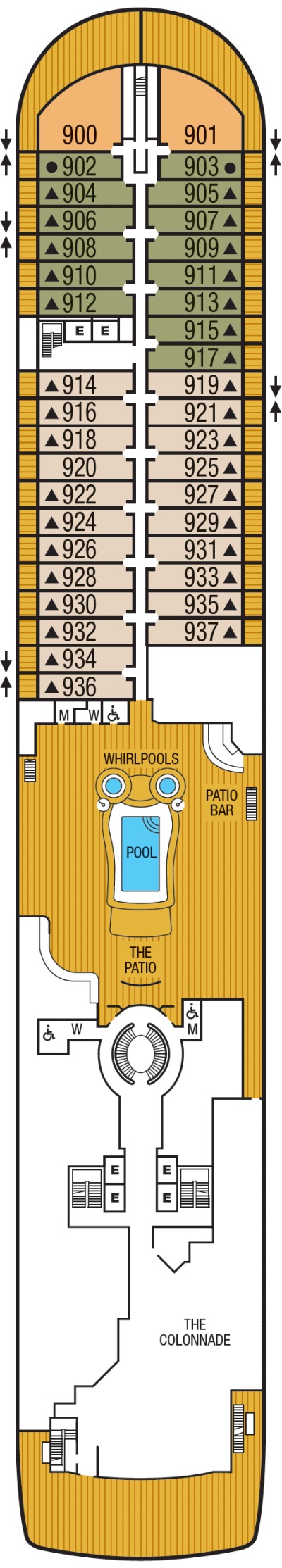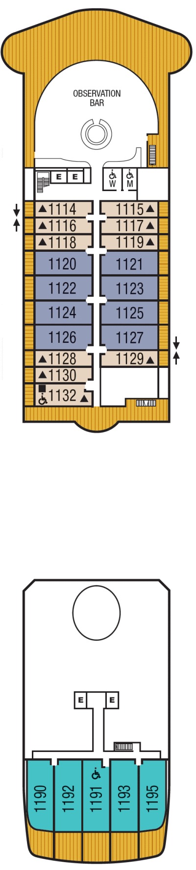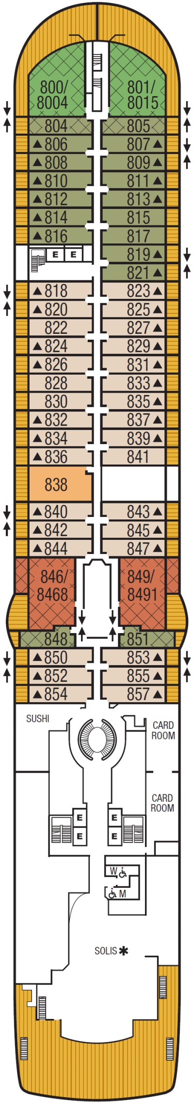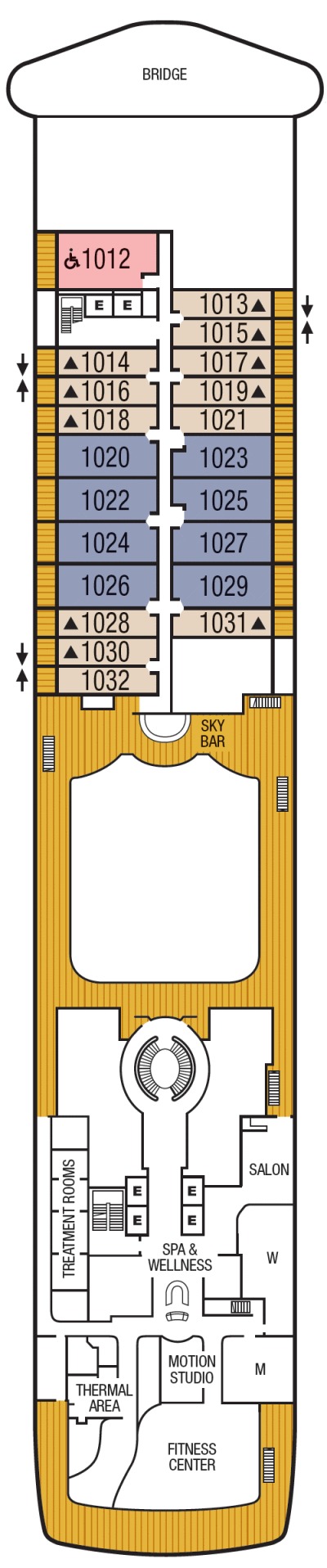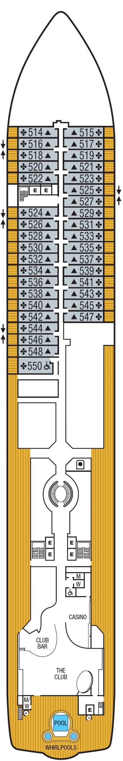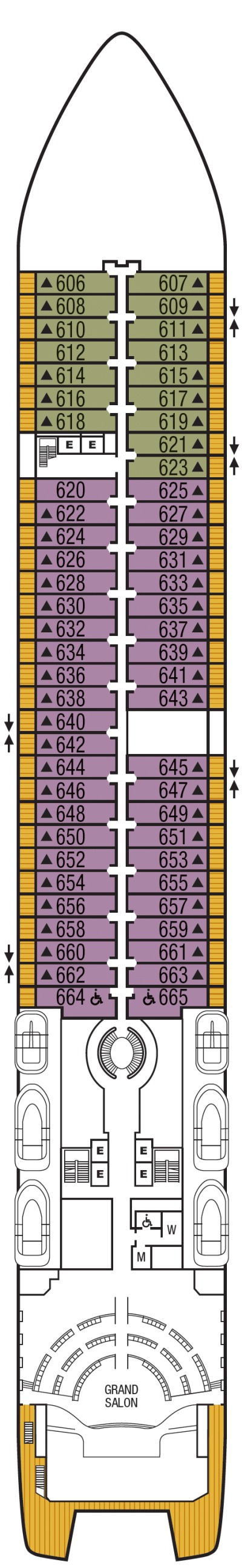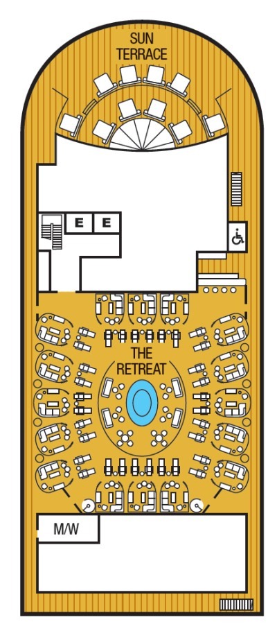 Découvrez les différents ponts du navire, chacun offrant des espaces et des ambiances uniques. Que ce soit pour profiter de la vue, vous détendre, vous divertir ou accéder aux installations principales, les ponts sont conçus pour faciliter votre expérience et vous permettre de vivre pleinement votre croisière.