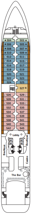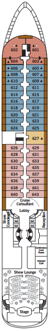 Découvrez les différents ponts du navire, chacun offrant des espaces et des ambiances uniques. Que ce soit pour profiter de la vue, vous détendre, vous divertir ou accéder aux installations principales, les ponts sont conçus pour faciliter votre expérience et vous permettre de vivre pleinement votre croisière.