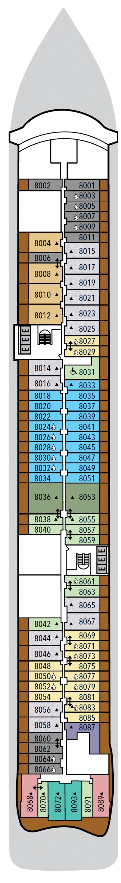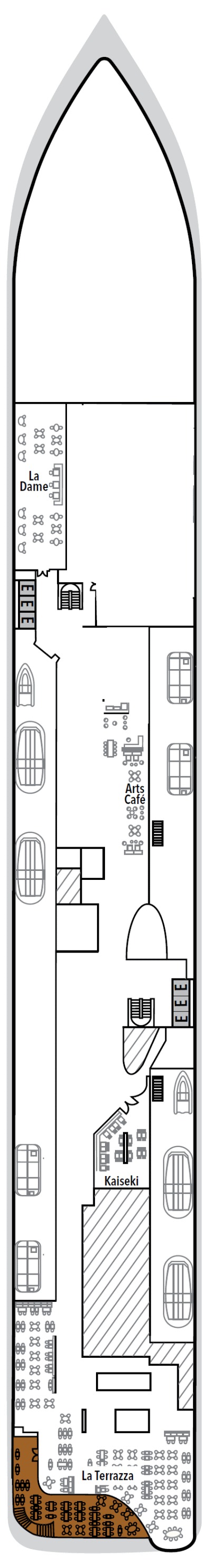 Découvrez les différents ponts du navire, chacun offrant des espaces et des ambiances uniques. Que ce soit pour profiter de la vue, vous détendre, vous divertir ou accéder aux installations principales, les ponts sont conçus pour faciliter votre expérience et vous permettre de vivre pleinement votre croisière.