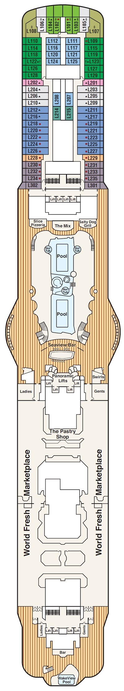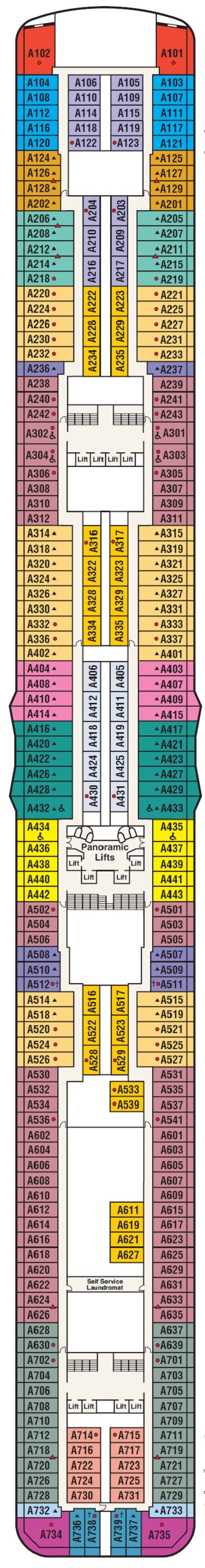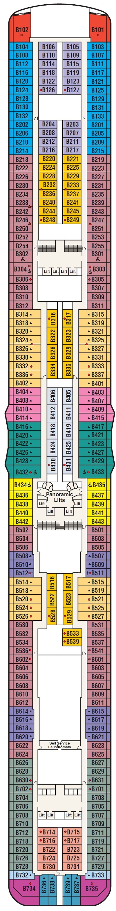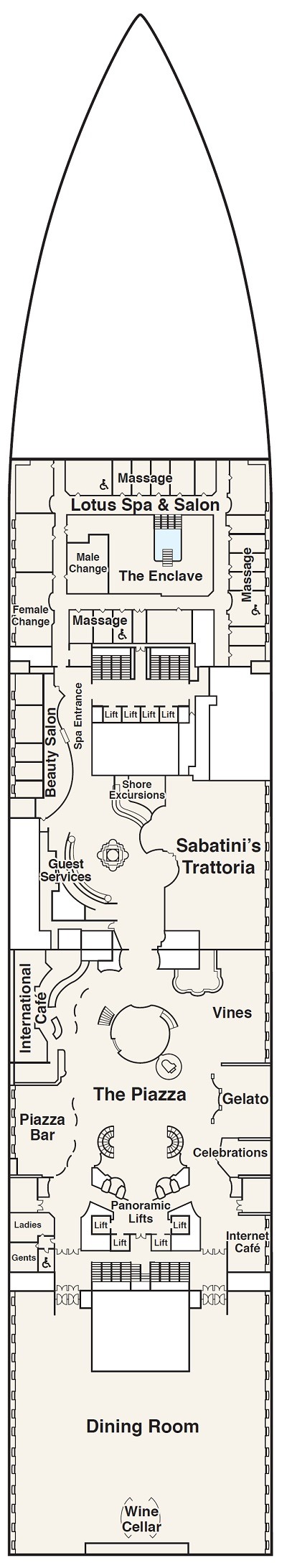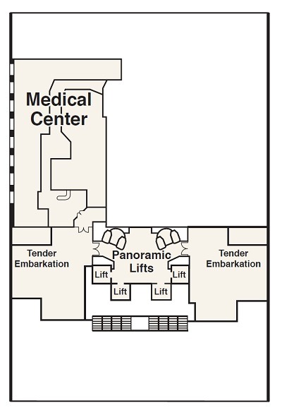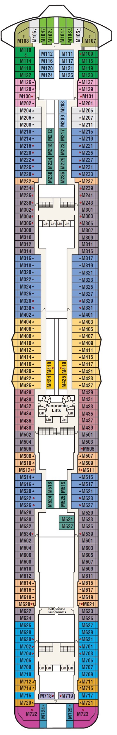 Découvrez les différents ponts du navire, chacun offrant des espaces et des ambiances uniques. Que ce soit pour profiter de la vue, vous détendre, vous divertir ou accéder aux installations principales, les ponts sont conçus pour faciliter votre expérience et vous permettre de vivre pleinement votre croisière.