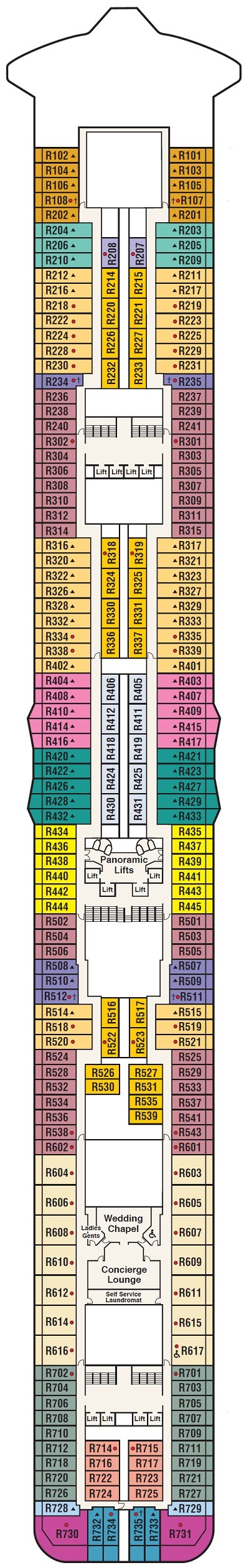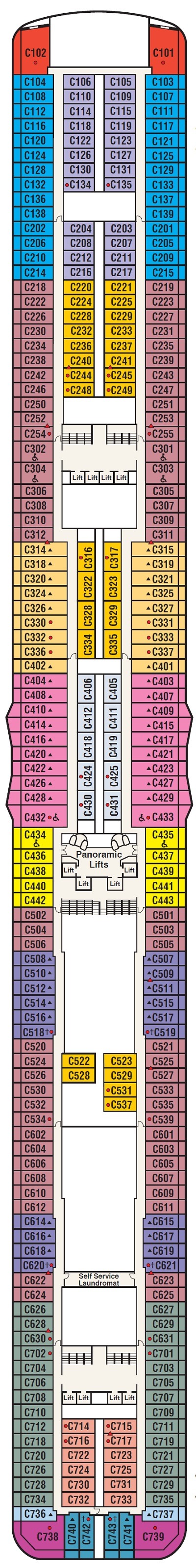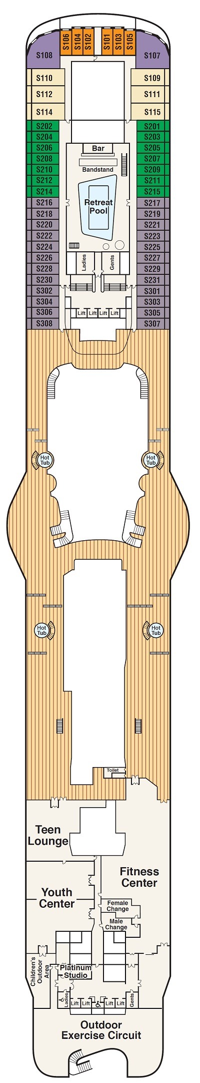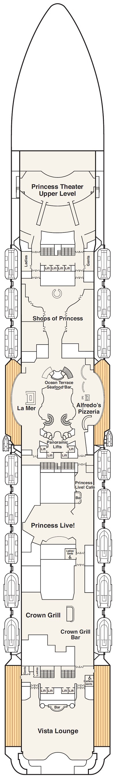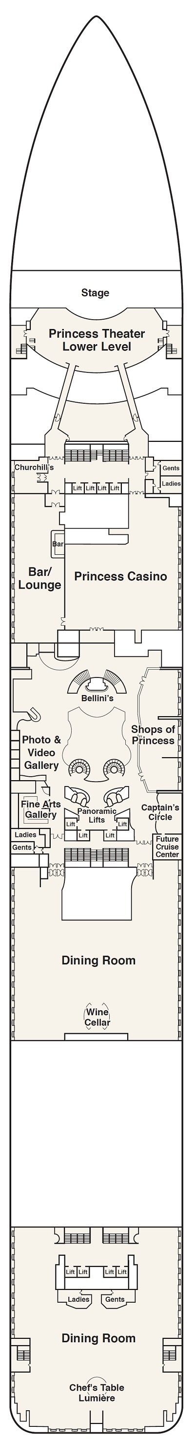 Découvrez les différents ponts du navire, chacun offrant des espaces et des ambiances uniques. Que ce soit pour profiter de la vue, vous détendre, vous divertir ou accéder aux installations principales, les ponts sont conçus pour faciliter votre expérience et vous permettre de vivre pleinement votre croisière.