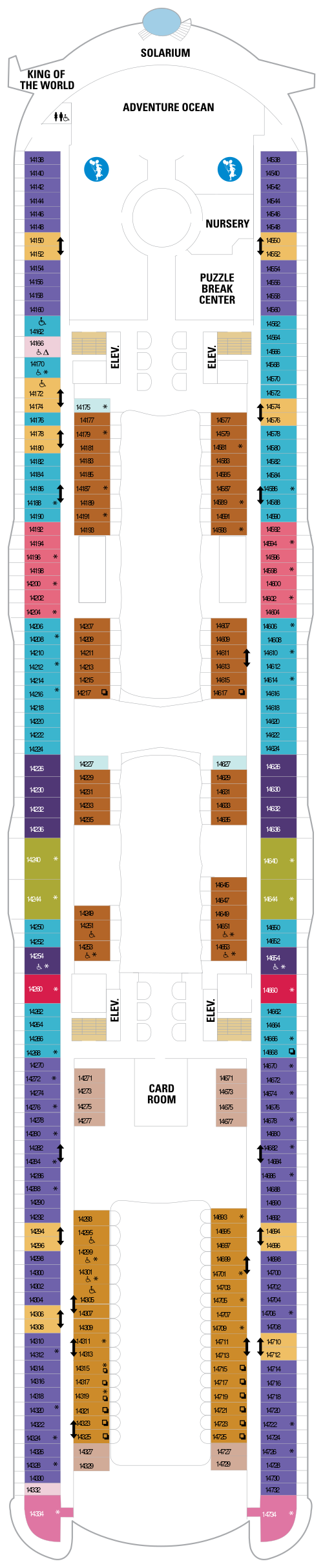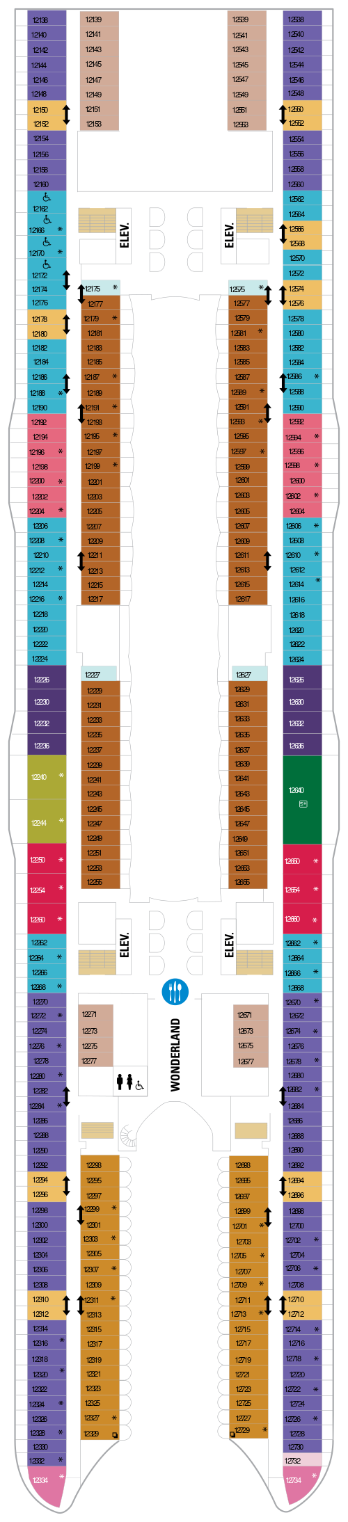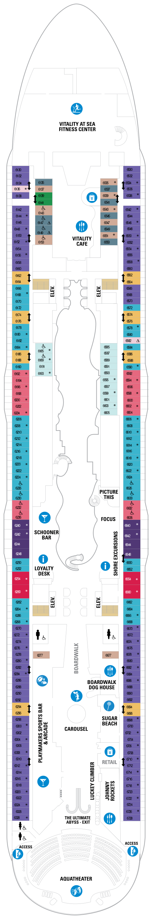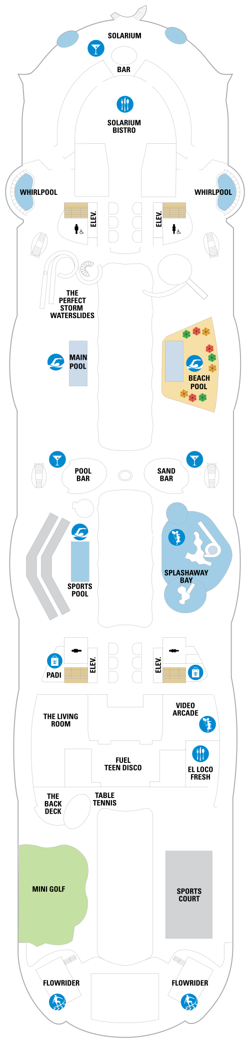 Quatrième navire à rejoindre la classe Oasis, le Symphony of the Seas propose une grande variété d'activités, d'équipements et de divertissements. Partez à la conquête du mur d'escalade, attrapez une vague sur le FlowRider, un simulateur de surf de 12 mètres de long, ou descendez une tyrolienne qui s'élève sur 9 ponts dans les airs au-dessus du navire. Les passagers à la recherche d'un moment plus détendu peuvent se rendre au spa Vitality à service complet, suivre un cours de yoga au centre de remise en forme ou profiter du soleil à la piscine de la plage. Certains des logements à bord disposent d'un balcon avec vue sur Central Park ou Boardwalk, qui offre aux clients une sensation de confort dans le quartier et des sensations fortes juste derrière la porte. Central Park offre une atmosphère new-yorkaise pour une expérience ultime en ville, tandis que le Boardwalk offre des heures de divertissement, des manèges aux friandises et plus encore. Après une journée au port, détendez-vous avec un verre au Rising Tide Bar sur la Royal Promenade avant d'aller voir un spectacle au Royal Theater ou à l'Aqua Theater. Une visite au Bionic Bar offrira aux clients l'expérience de barmans robots servant leurs boissons préférées. Il existe également une variété de restaurants spécialisés, tels que le Johnny Rockets, un restaurant de style années 50, Giovanni’s Table, Izumi et Jamie’s Italian. Le Symphony of the Seas propose également le programme gratuit Adventure Ocean® Youth, le programme Royal Babies® et Royal Tots®, des espaces salon et discothèque pour adolescents, ainsi que le parc aquatique pour enfants Splashaway Bay.