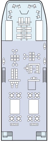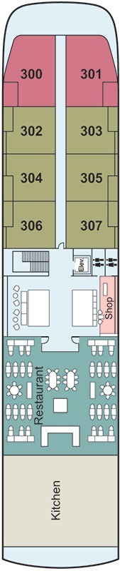 Découvrez les différents ponts du navire, chacun offrant des espaces et des ambiances uniques. Que ce soit pour profiter de la vue, vous détendre, vous divertir ou accéder aux installations principales, les ponts sont conçus pour faciliter votre expérience et vous permettre de vivre pleinement votre croisière.
