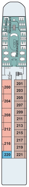 Découvrez les différents ponts du navire, chacun offrant des espaces et des ambiances uniques. Que ce soit pour profiter de la vue, vous détendre, vous divertir ou accéder aux installations principales, les ponts sont conçus pour faciliter votre expérience et vous permettre de vivre pleinement votre croisière.