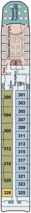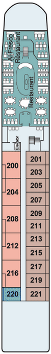 Découvrez les différents ponts du navire, chacun offrant des espaces et des ambiances uniques. Que ce soit pour profiter de la vue, vous détendre, vous divertir ou accéder aux installations principales, les ponts sont conçus pour faciliter votre expérience et vous permettre de vivre pleinement votre croisière.
