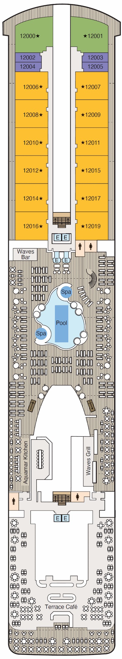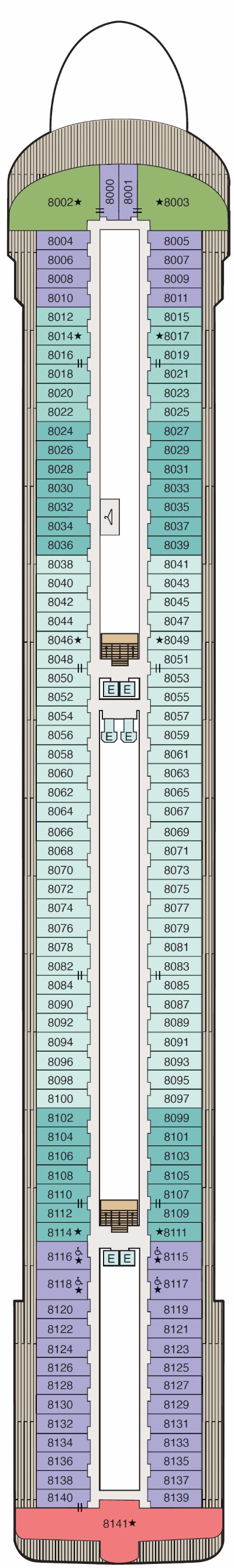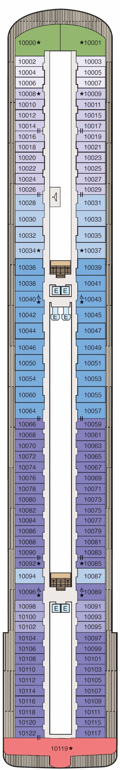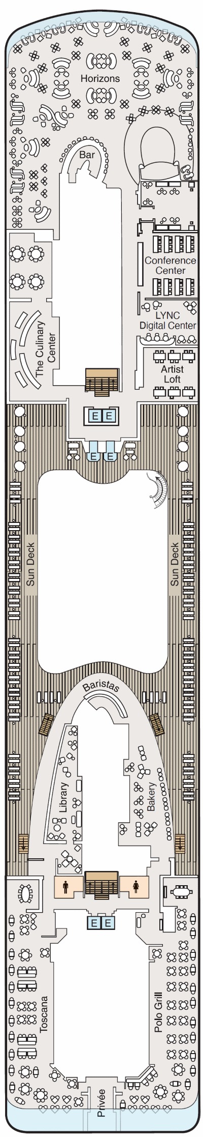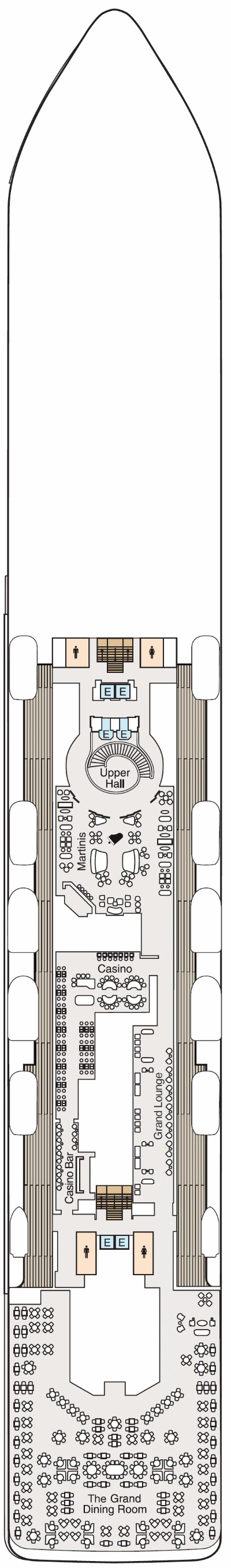 Découvrez les différents ponts du navire, chacun offrant des espaces et des ambiances uniques. Que ce soit pour profiter de la vue, vous détendre, vous divertir ou accéder aux installations principales, les ponts sont conçus pour faciliter votre expérience et vous permettre de vivre pleinement votre croisière.