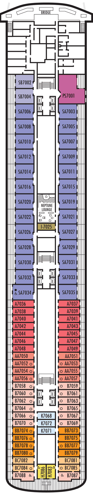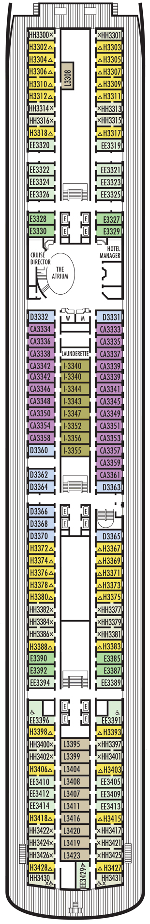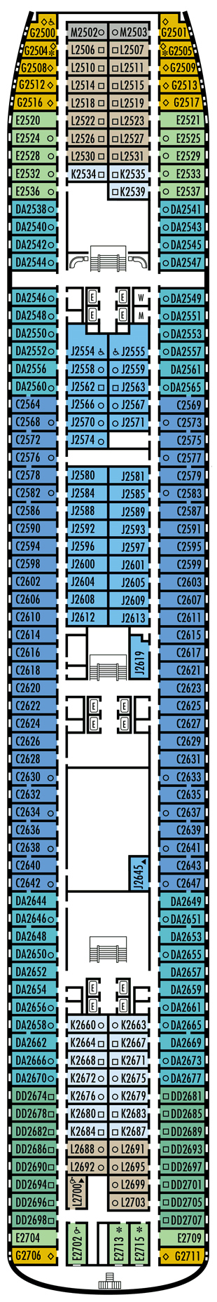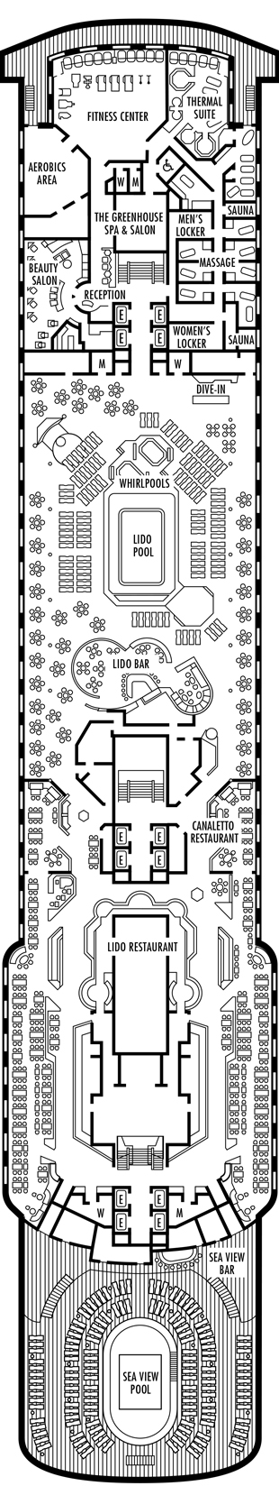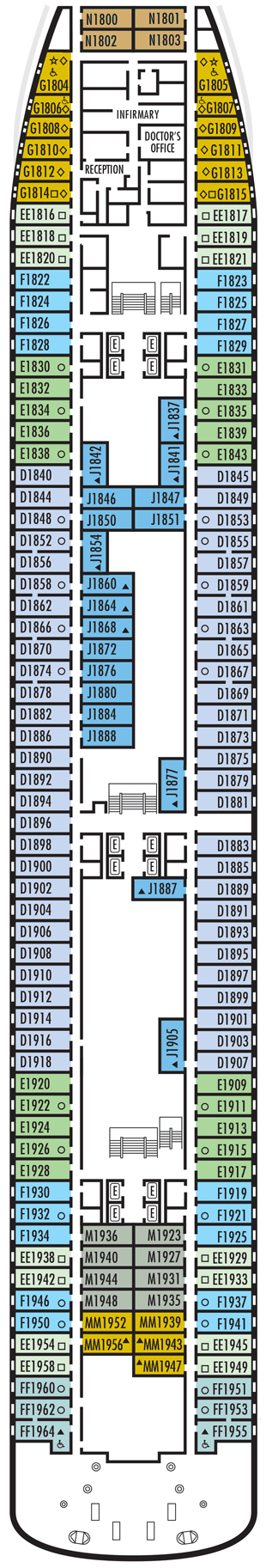 Découvrez les différents ponts du navire, chacun offrant des espaces et des ambiances uniques. Que ce soit pour profiter de la vue, vous détendre, vous divertir ou accéder aux installations principales, les ponts sont conçus pour faciliter votre expérience et vous permettre de vivre pleinement votre croisière.
