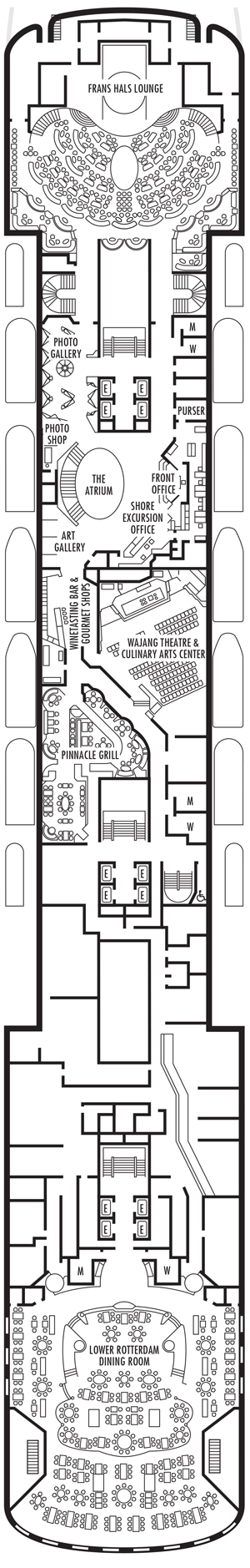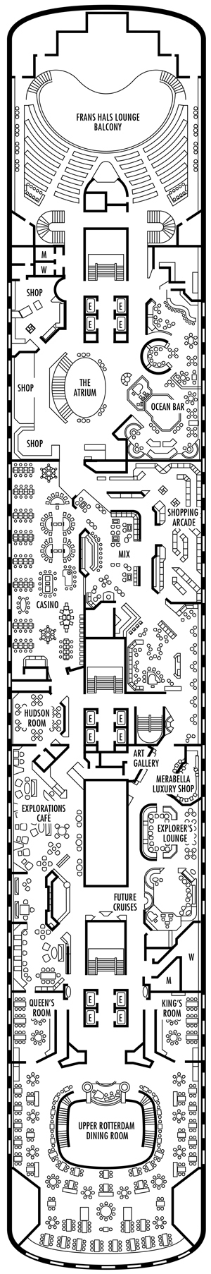 Remarque : des places assises libres pour le dîner sont disponibles au niveau inférieur de la salle à manger principale à chaque croisière du Volendam.